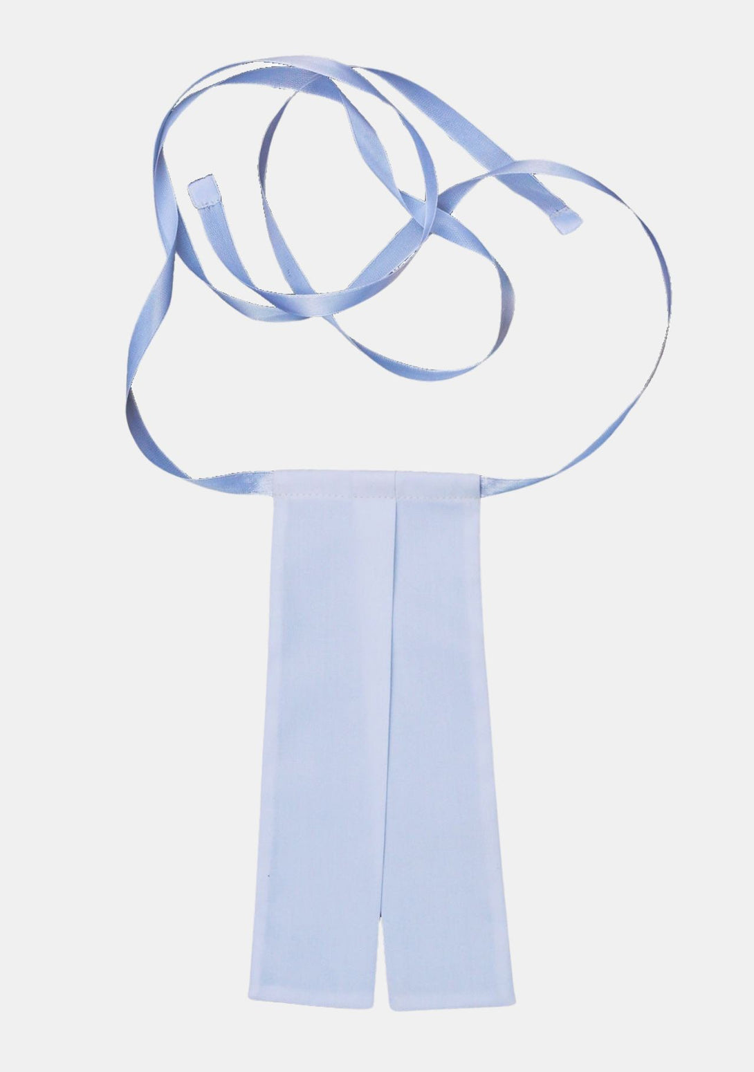 Measuring 3½ inches wide, they are available in two lengths, 5½ inches, and 7½ inches, to accommodate different preferences and needs. The bands feature two 18-inch strings that can be tied around the neck for a secure fit, either at the back or front, based on personal preference. The thoughtful design of these bands ensures they stay securely in place without the need for additional fastenings, making them convenient and comfortable for long periods of use during court proceedings or other legal events.