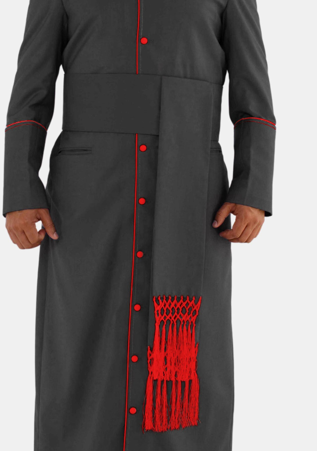Enhance your clerical attire with the Black Band Cincture with Red Fringe, a perfect blend of tradition and style. This elegant accessory is designed for priests, ministers, and church leaders, adding a bold and meaningful touch to your outfit for formal occasions and religious ceremonies.