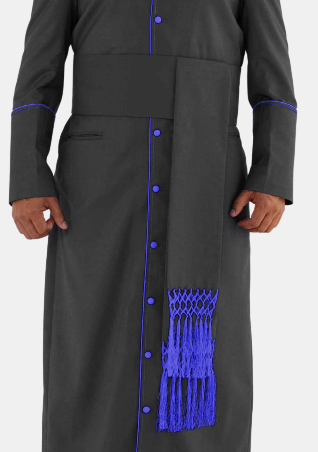 Clerical Elegance Redefined: Black Cincture with Royal Blue Accents