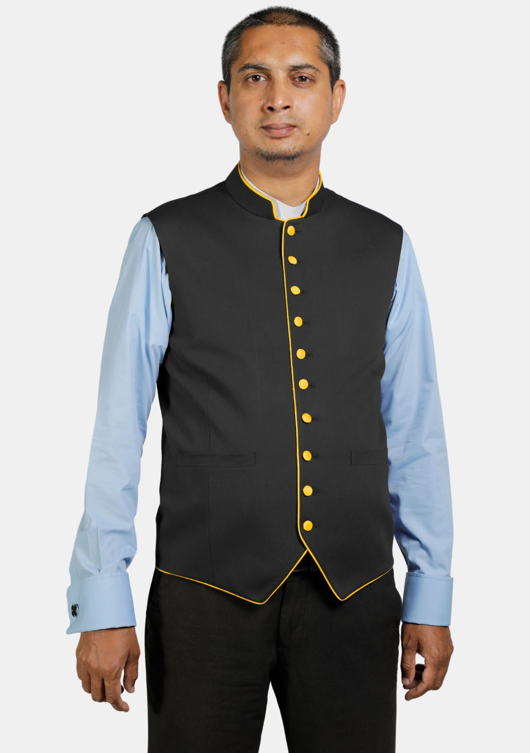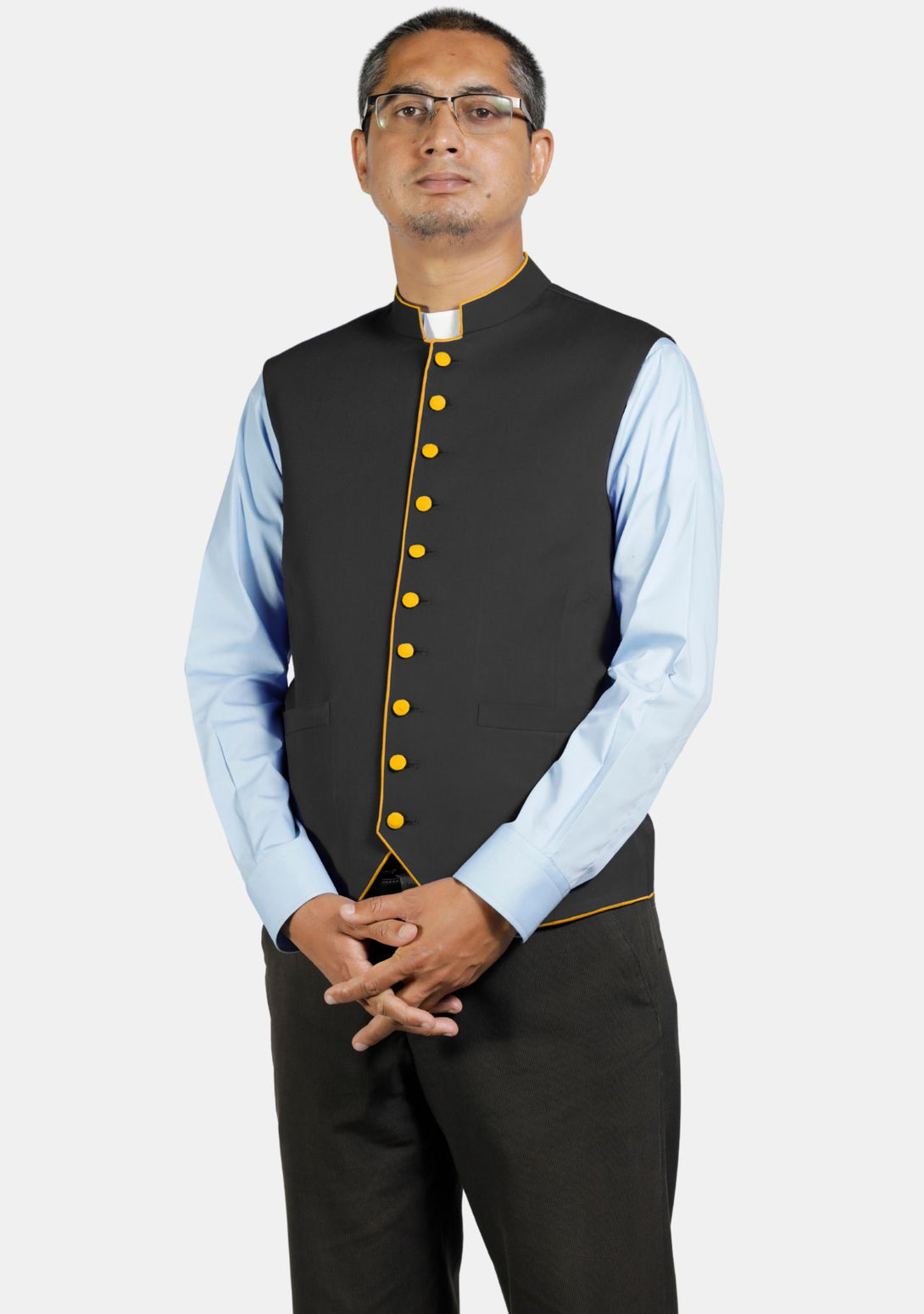When you wear the Eloquent Black with Contrast clergy vests, it shows that you care about your faith and your community. The bright trim on the clergy vest means happiness and spiritual growth.