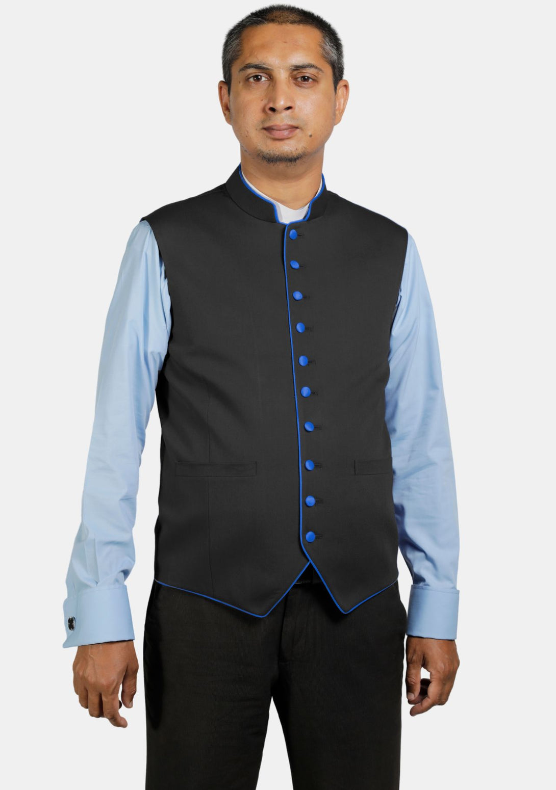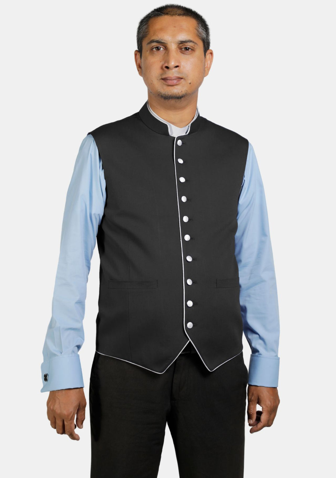 Eloquent Black Clergy Vest with Contrast Trim