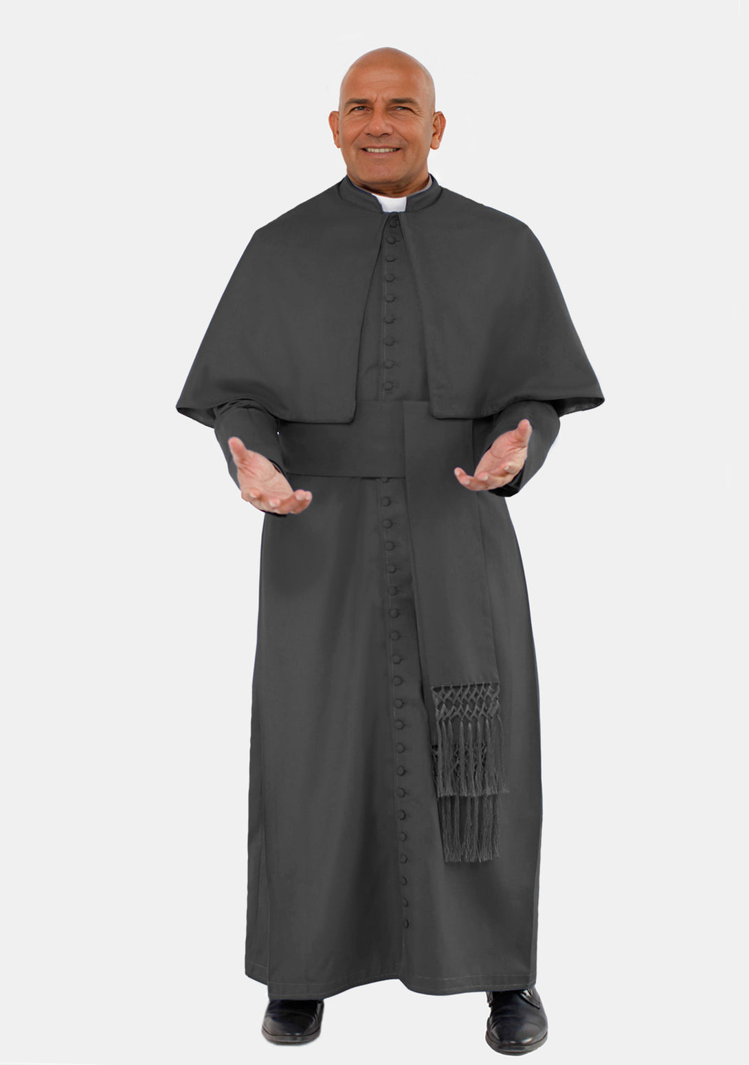 The SaviourBlack Roman Cassock with Shoulder Cape is designed for male clergy who value tradition, simplicity, and spiritual presence. Whether you're leading worship, performing ceremonies, or attending sacred events, this cassock offers a powerful, dignified appearance that honours your role in ministry. With a refined silhouette and versatile design, it's the perfect blend of classic form and modern comfort.