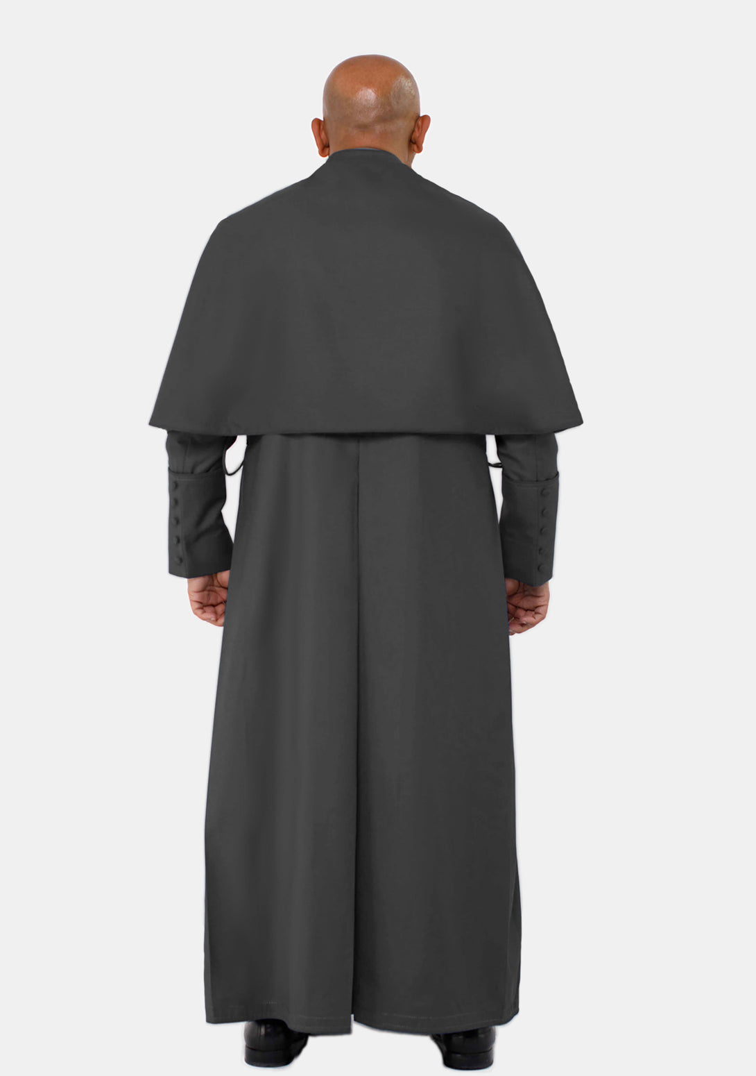 Classic Black Roman Cassock with Shoulder Cape for Spiritual Leaders