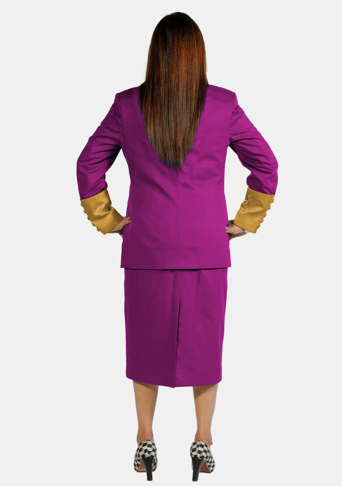 - Cool Colors: Our skirt suits come in cool colors like purple and gold.
