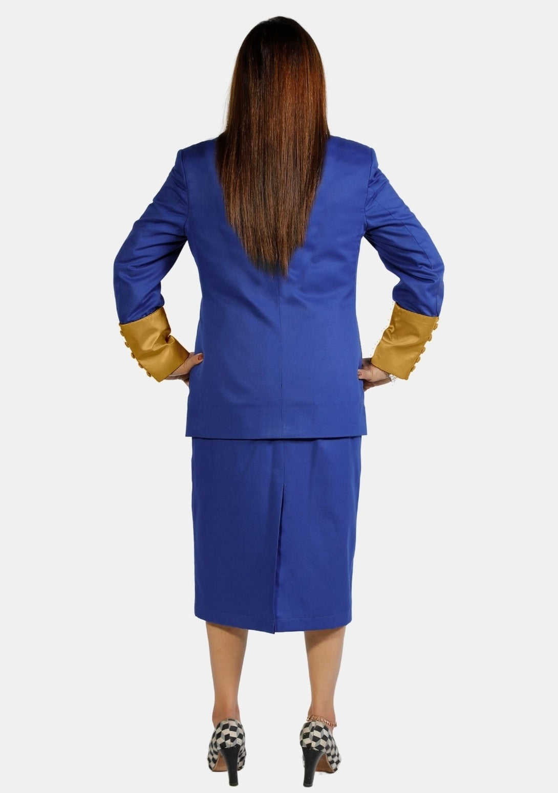 - The choice of royal blue is a symbol. It represents wisdom, dignity, and grace, along with the value of gold. This suit caters to women who lead confidently and desire to display their authority.