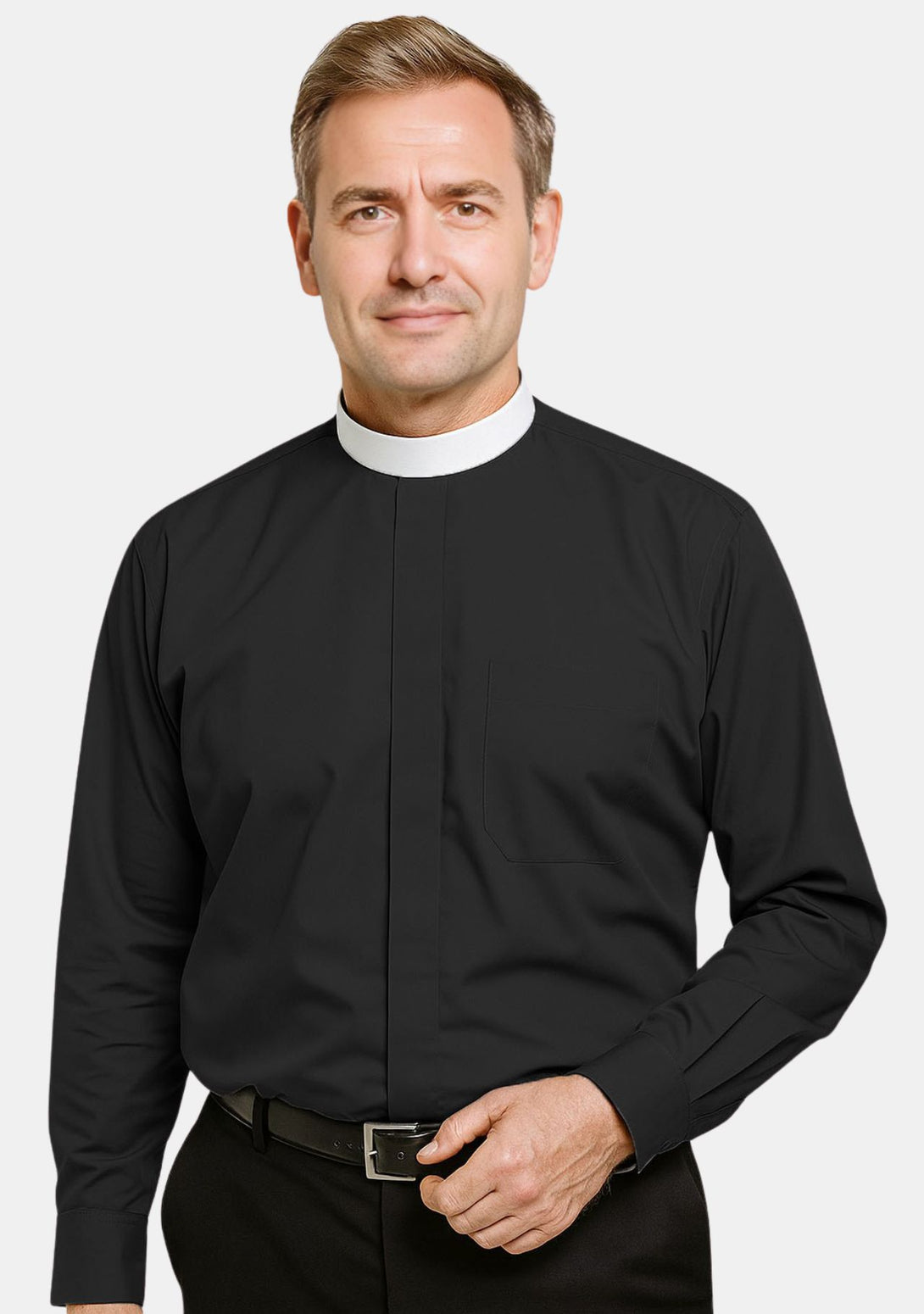 Make a powerful impression with the Ecclesia Elegance Full Collar Clergy Shirt in Black for Men - buy now!