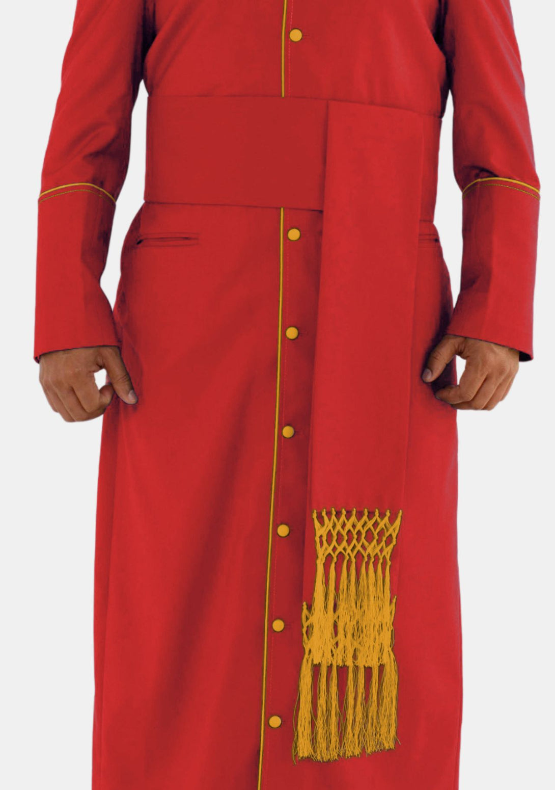 The Red Band Cincture Belt with Gold Fringes is not just an accessory but a symbol of faith, leadership, and divine calling. The rich red and gold details create a striking yet elegant look, perfect for any clergy member.