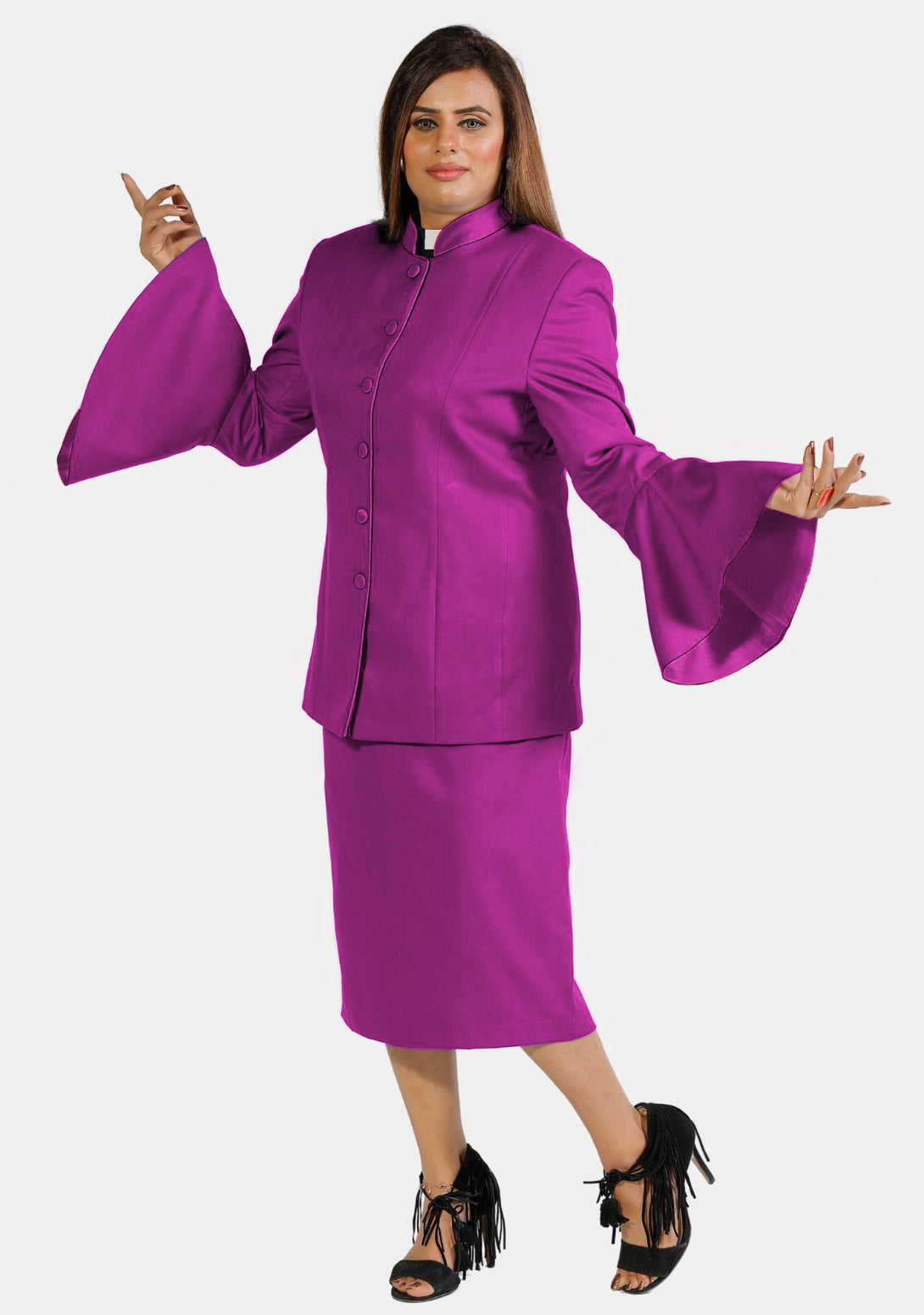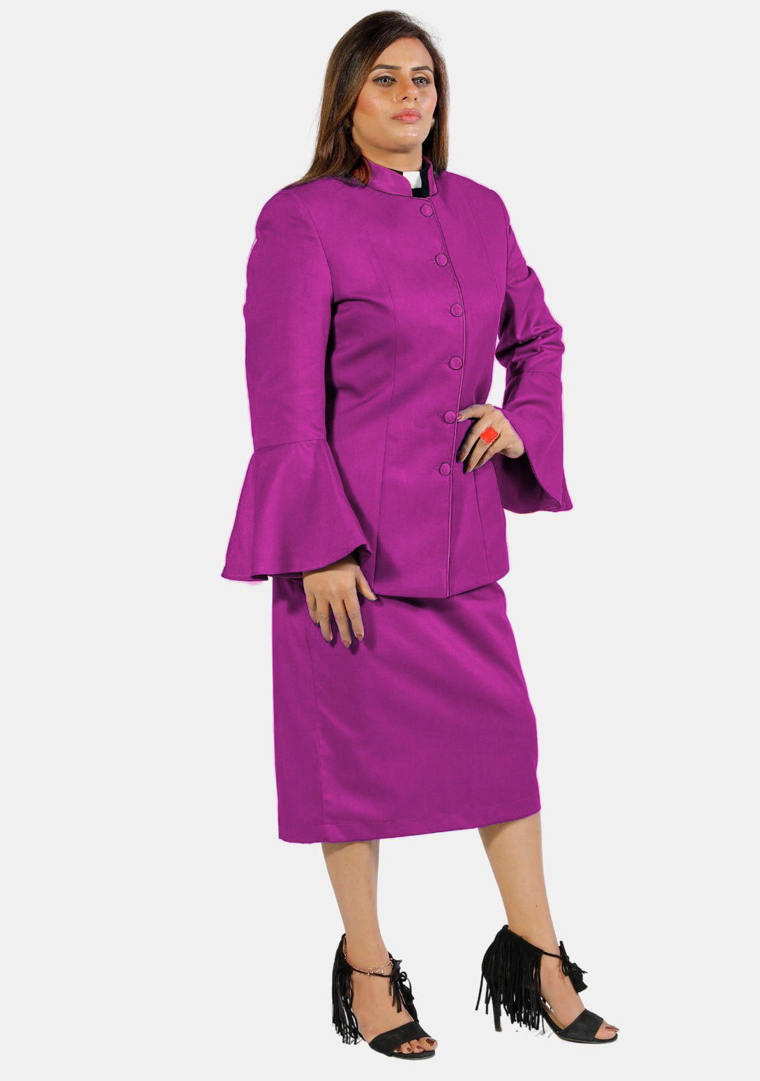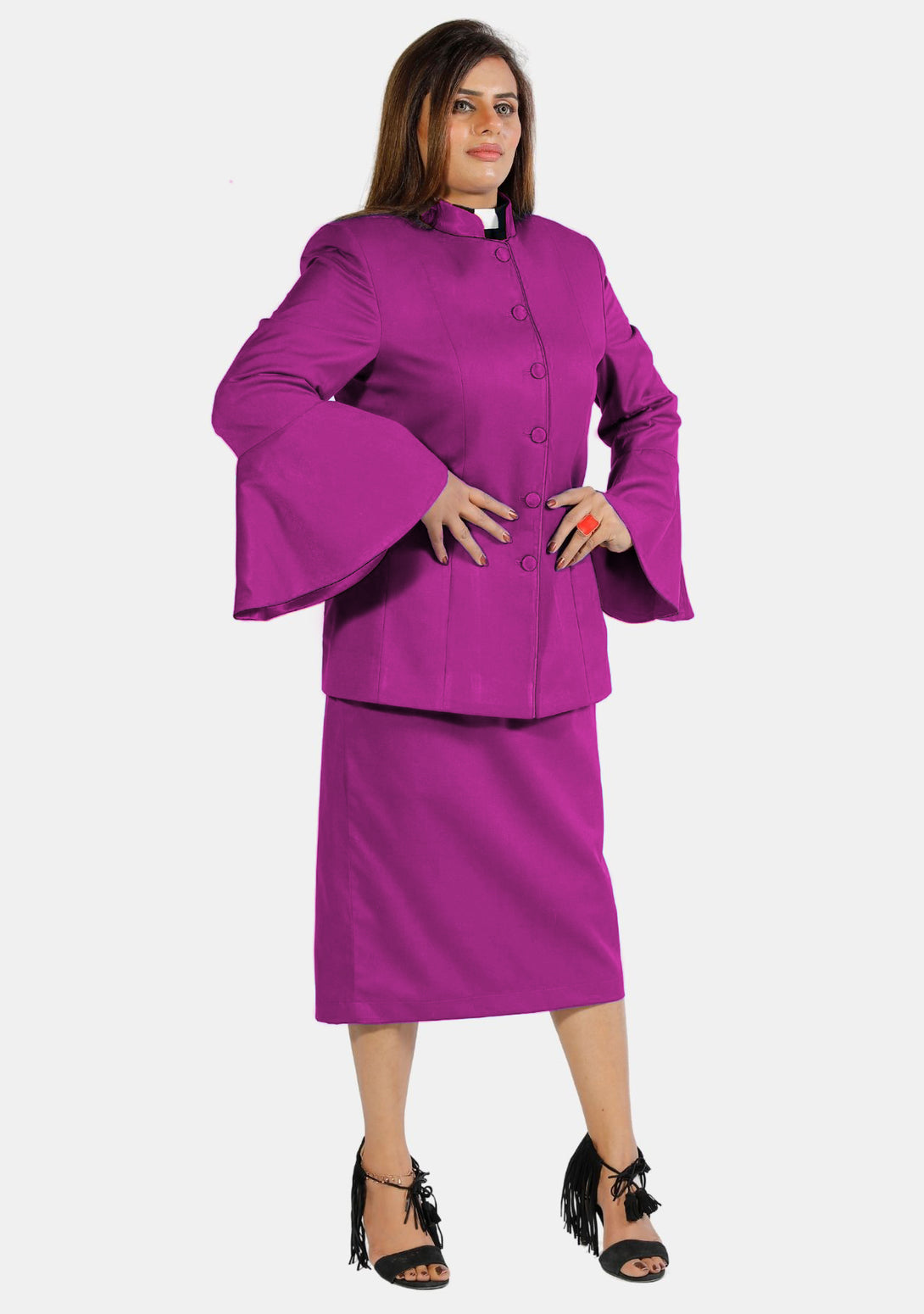 The eClergy's Suit Flared Sleeve Red Purple is a bold and striking outfit designed for women in spiritual leadership. Combining the rich, vibrant tones of red purple, this suit signifies both strength and grace. It's perfect for women who lead with faith, offering them a combination of traditional values and modern comfort. This clergy suit is a symbol of the holy work women do, showing both their commitment and style.