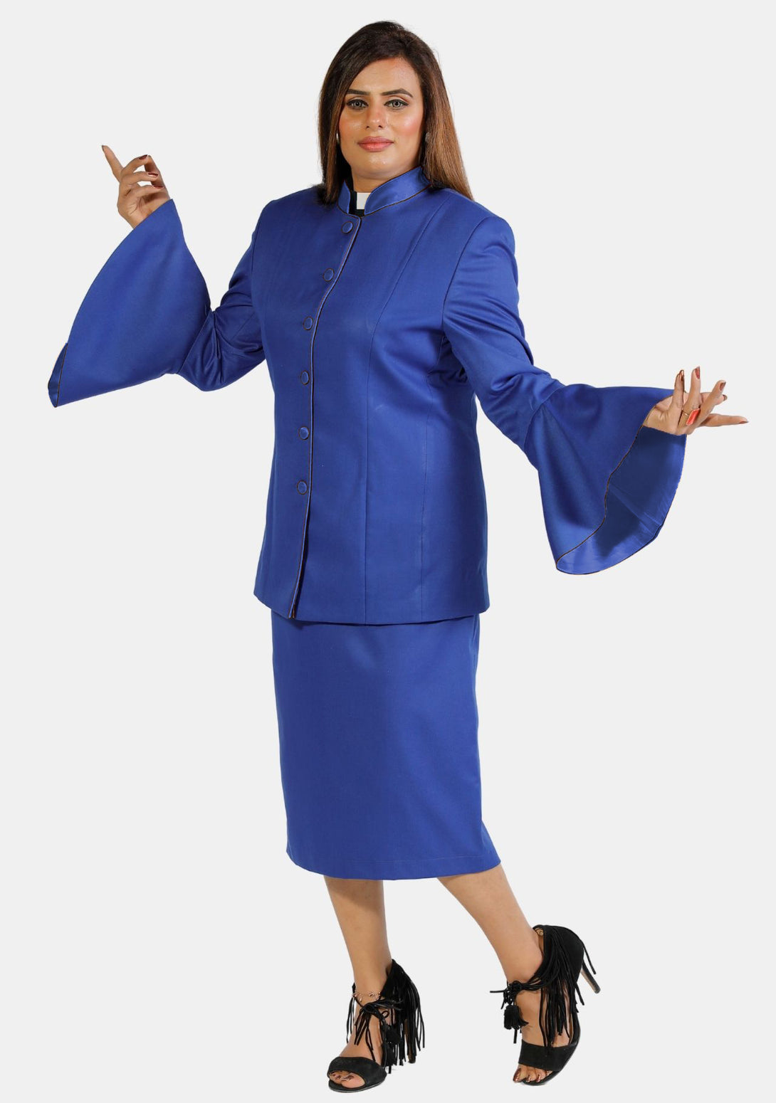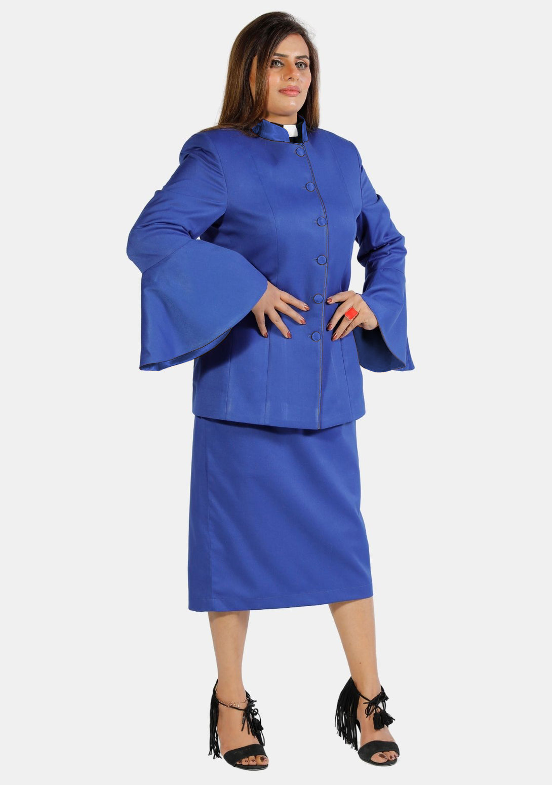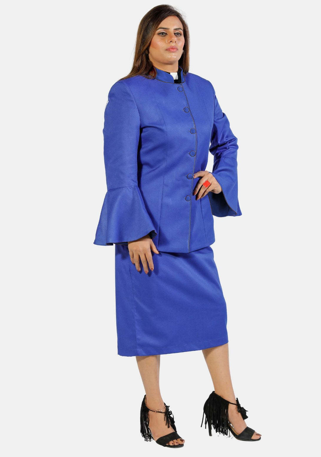 Empowerment in Style: Women's Clergy Suit Flared Sleeve Royal Blue