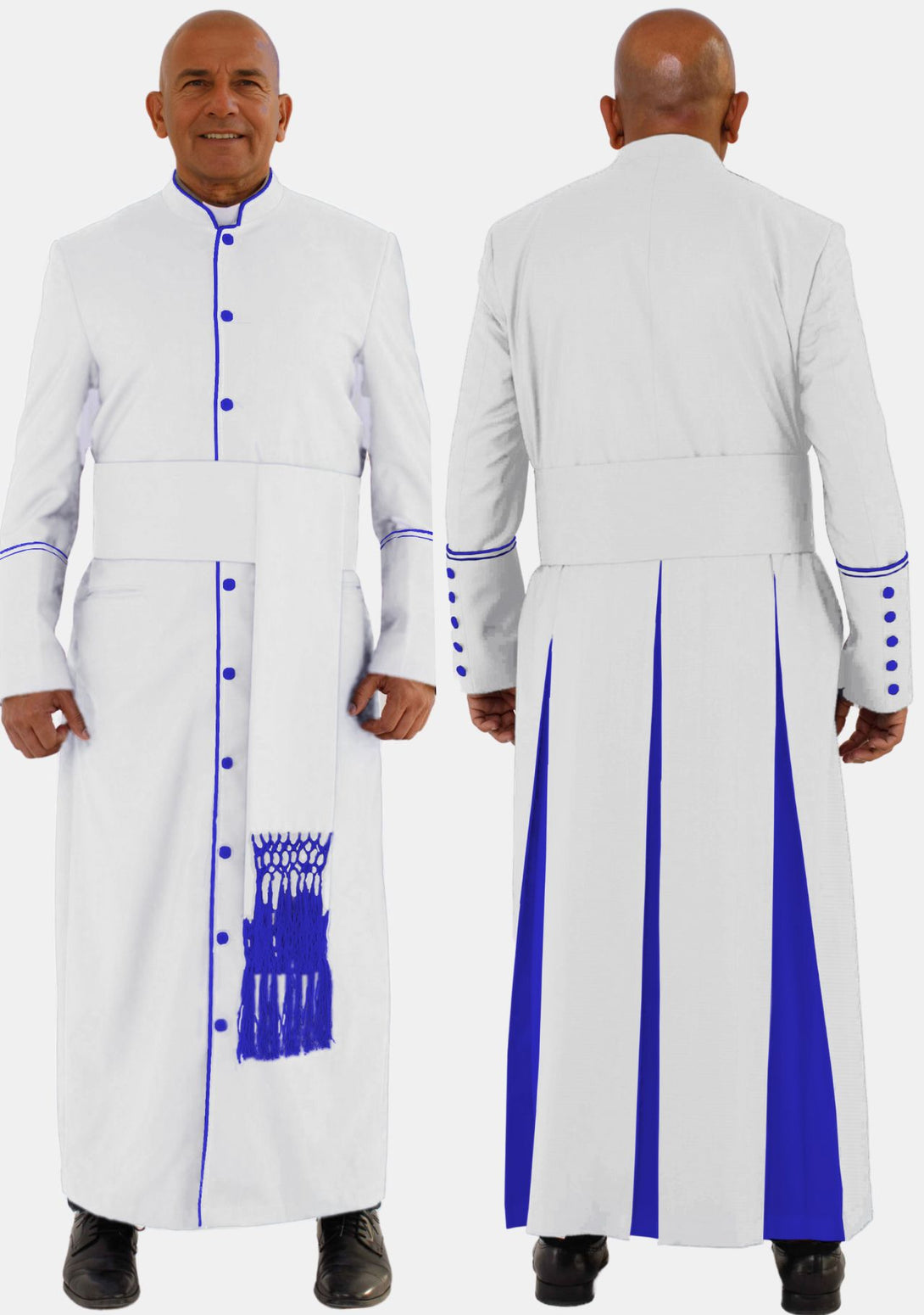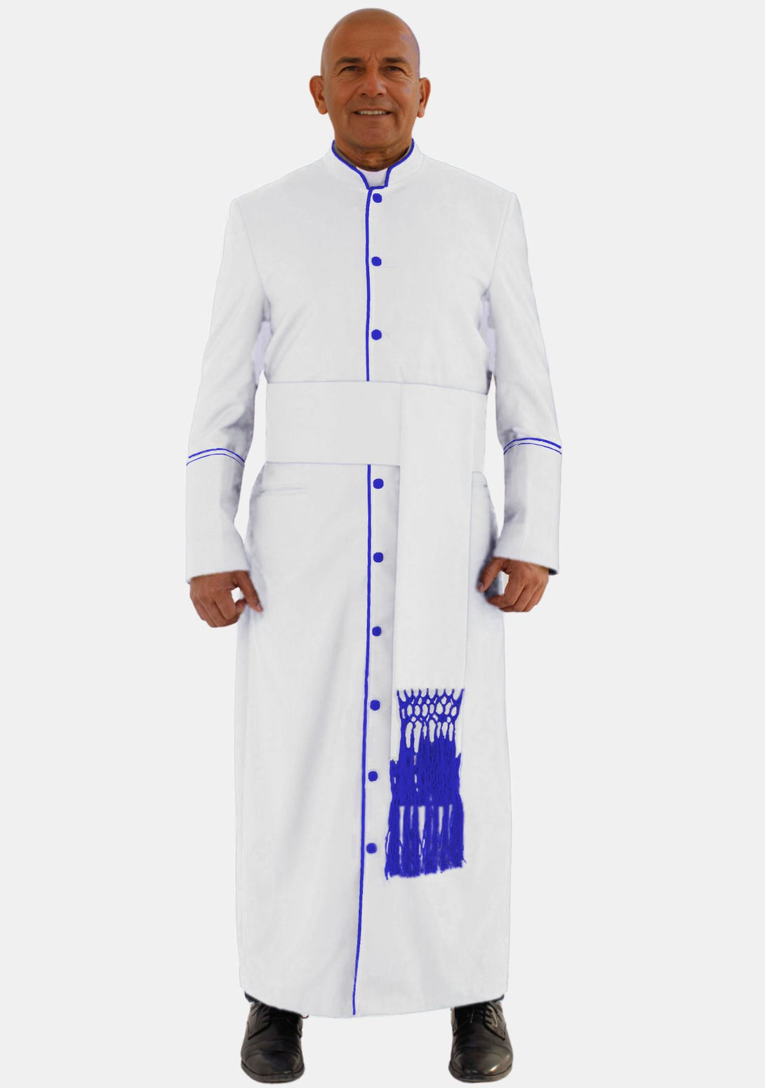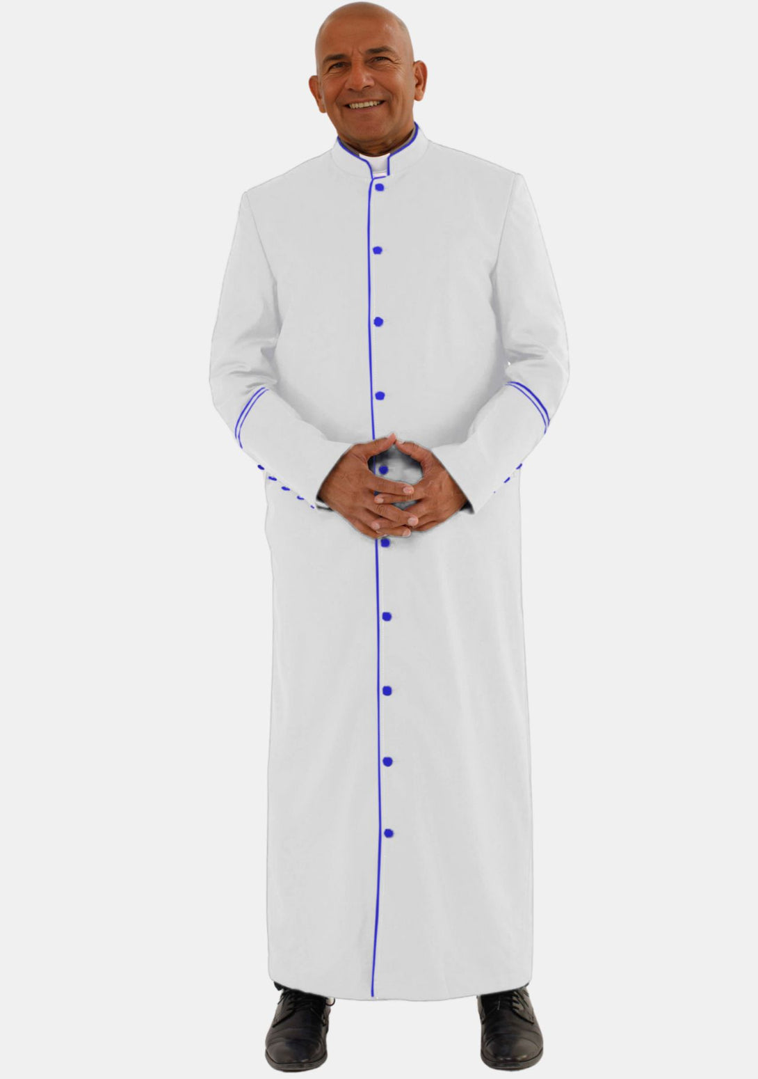 Feel Distinguished – Get the Ephraim Clergy Robe in White with Royal Blue!