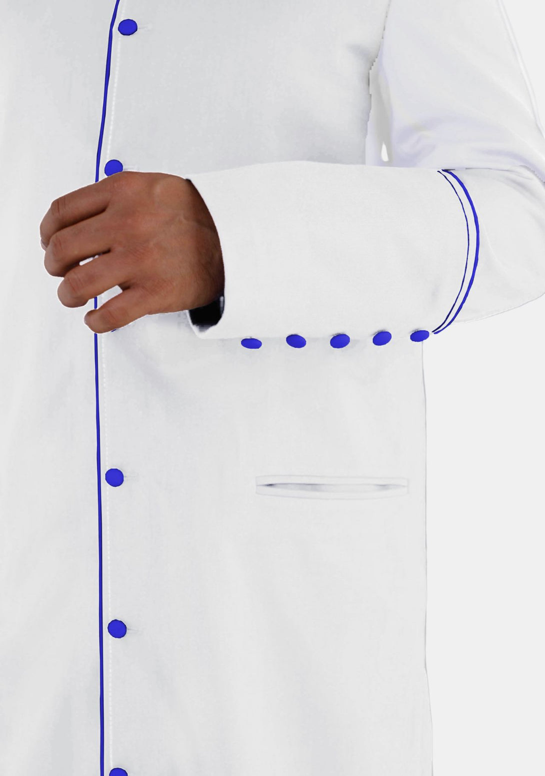 • Decorative Piping: Elegant royal blue piping runs along the edges of the robe, giving it a polished and sophisticated appearance.