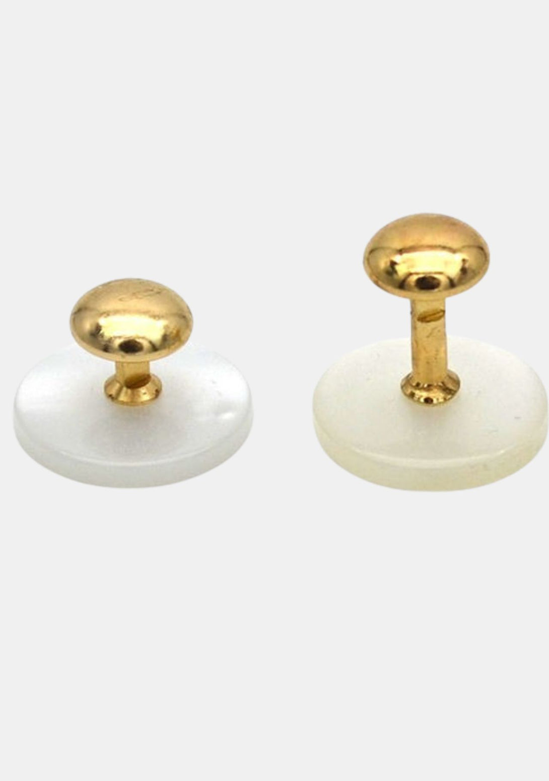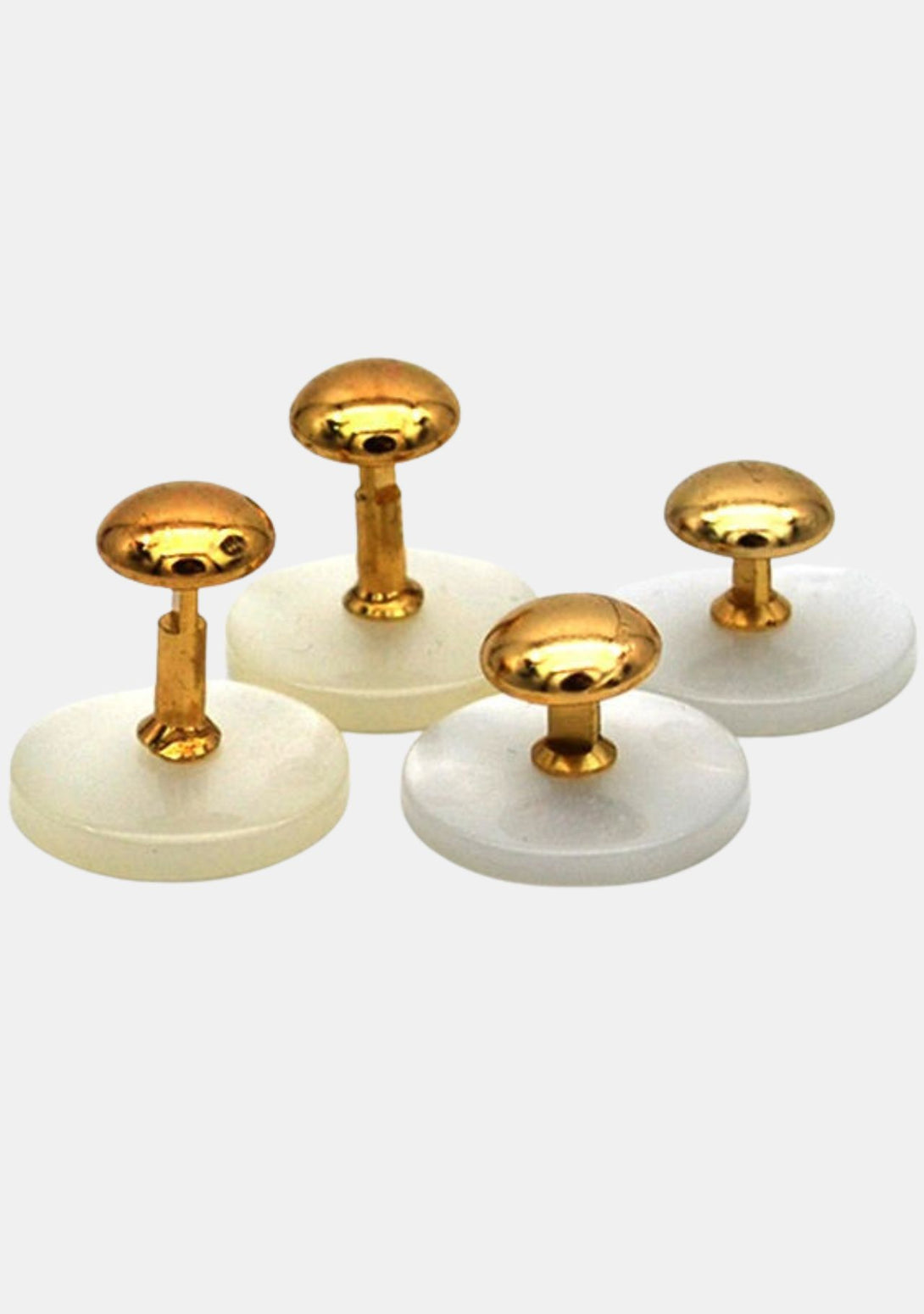 The Gold Plastic Tunic Shirt Collar Studs are a simple yet important accessory for clergy members. These studs help keep the collar of a tunic shirt in place, giving it a neat and dignified look. Whether you are preparing for Sunday service, a wedding, a baptism, or any special church event, these collar studs add a touch of grace and order to your clergy robe or tunic shirt.