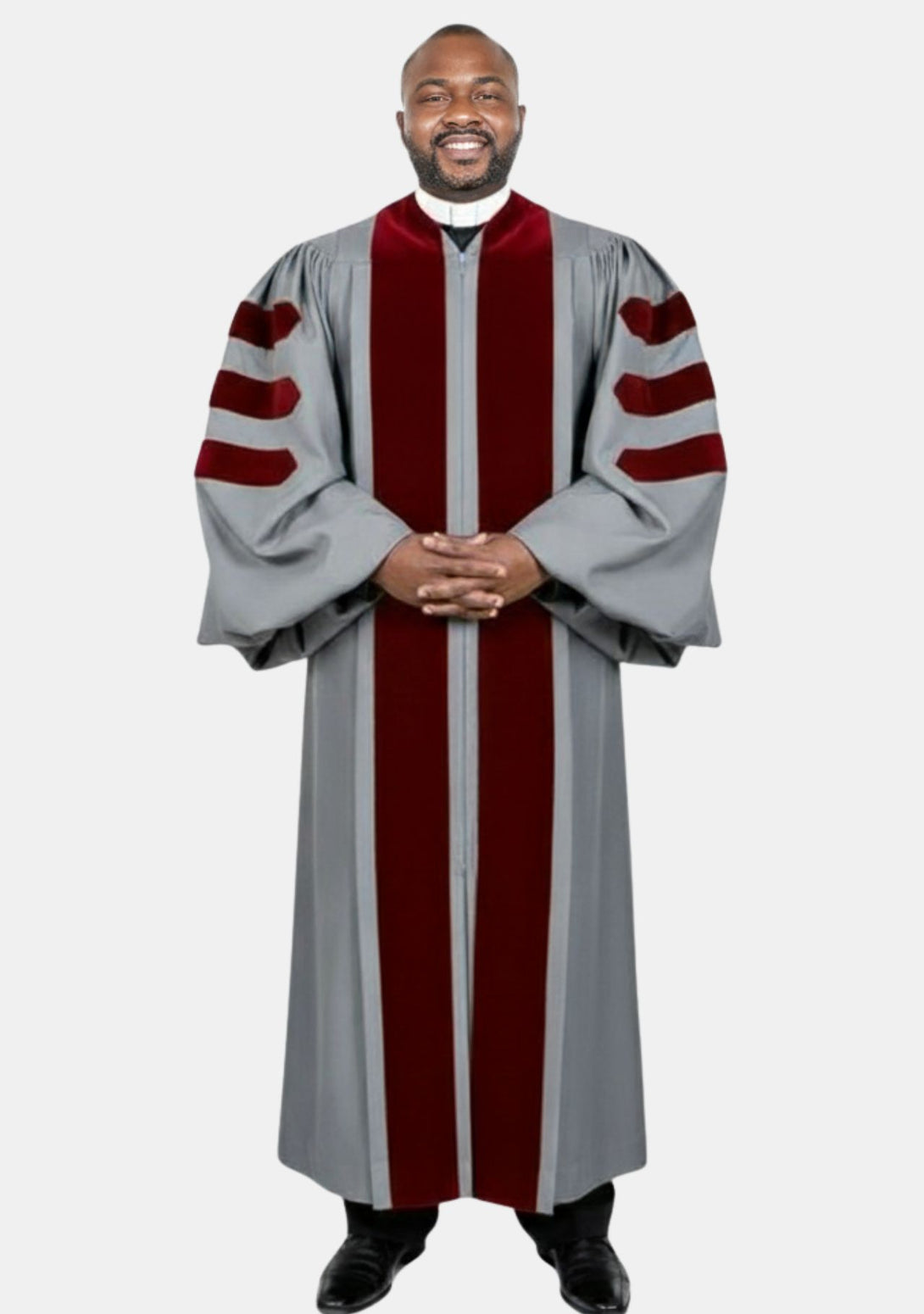 Carry God’s peace and guidance in every service with the Calvin Gray Pulpit Robe for Men with red contrast doctoral bars.