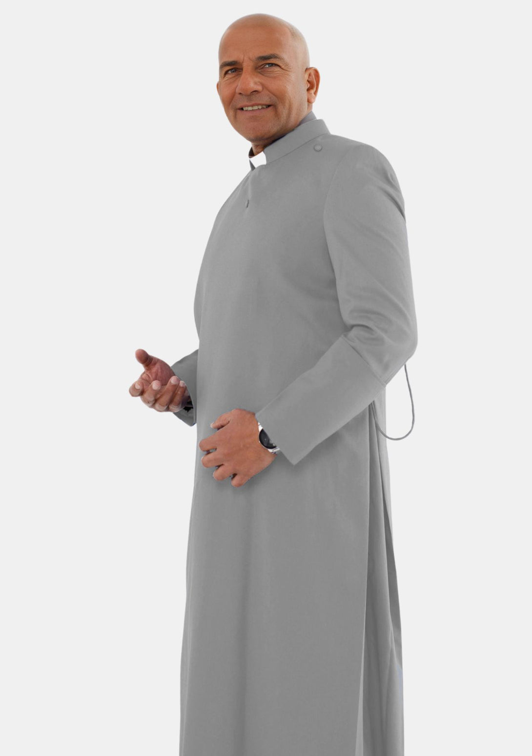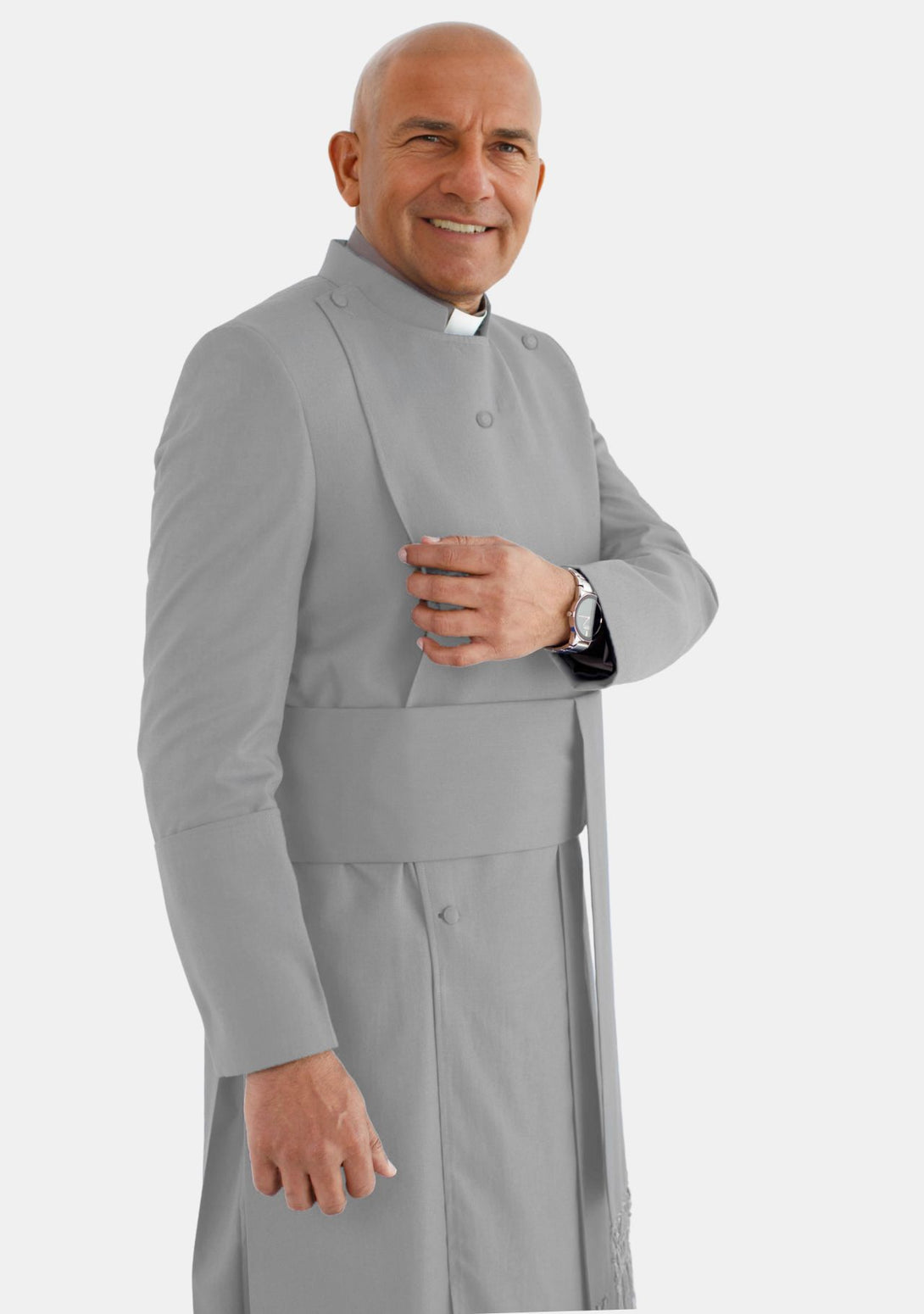 - Grey Color: This cassock's unique grey hue sets it apart, offering a modern alternative to traditional black. This versatile color complements various liturgical settings, making it suitable for different occasions.