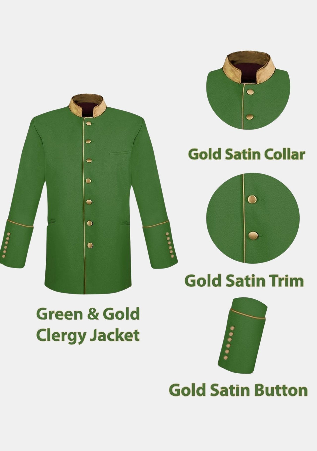 Dress in divinity – Order your Olive Green/Gold Clergy Jacket now and step into sacred moments with grace and style.