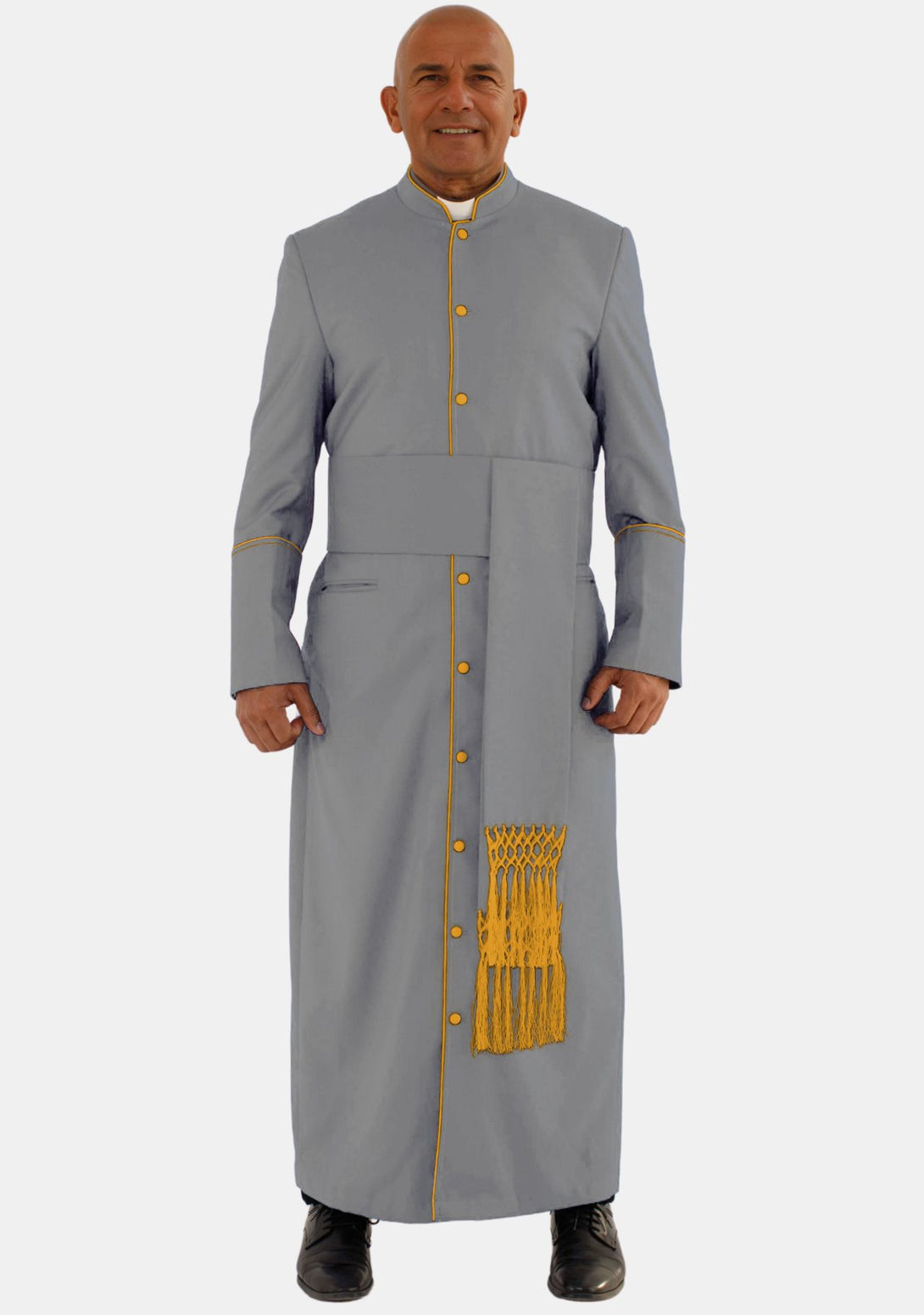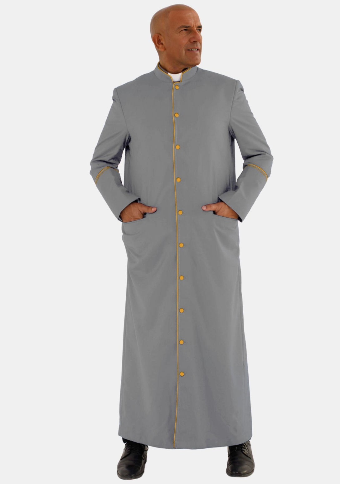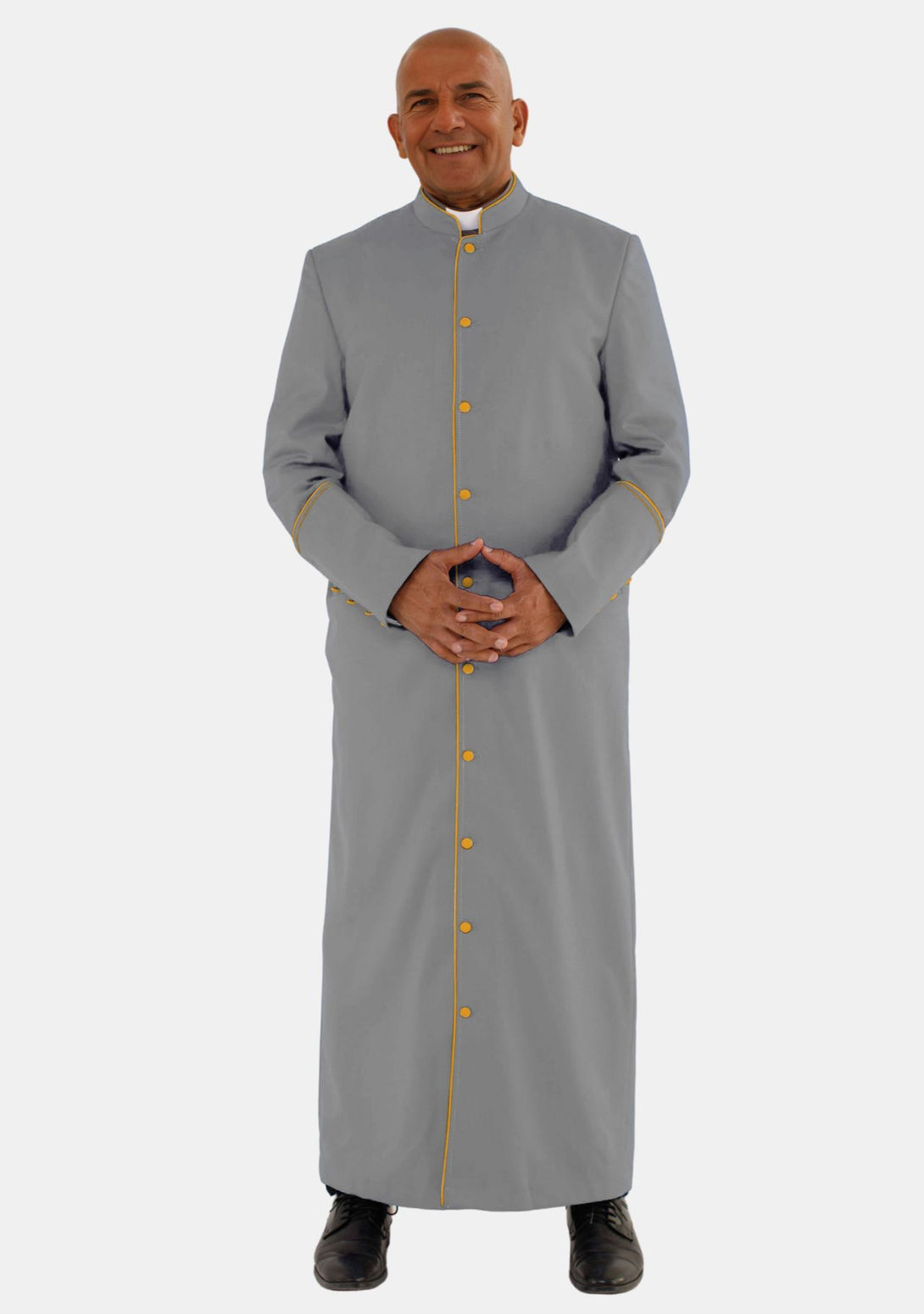 Overall, the Jesse Clergy Robe in Gray with Gold is an excellent choice if you're looking for a comfortable, stylish, and timeless robe for formal occasions. Its simple yet elegant design makes it suitable for any setting where dignity and grace are essential.