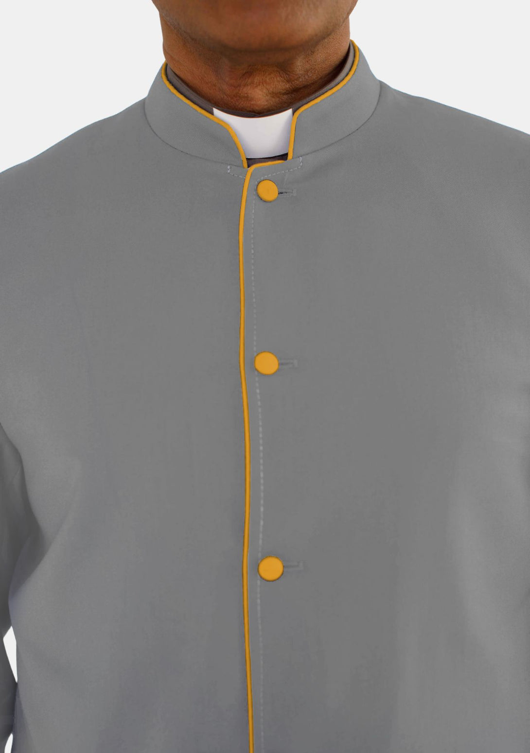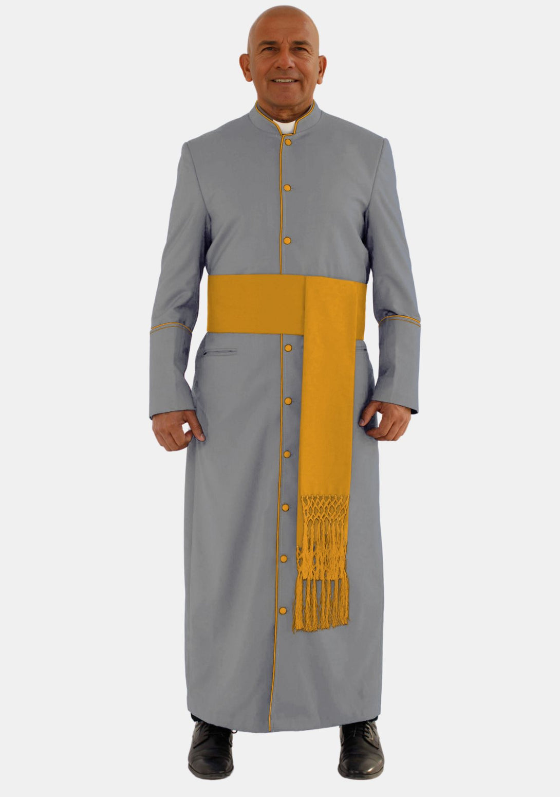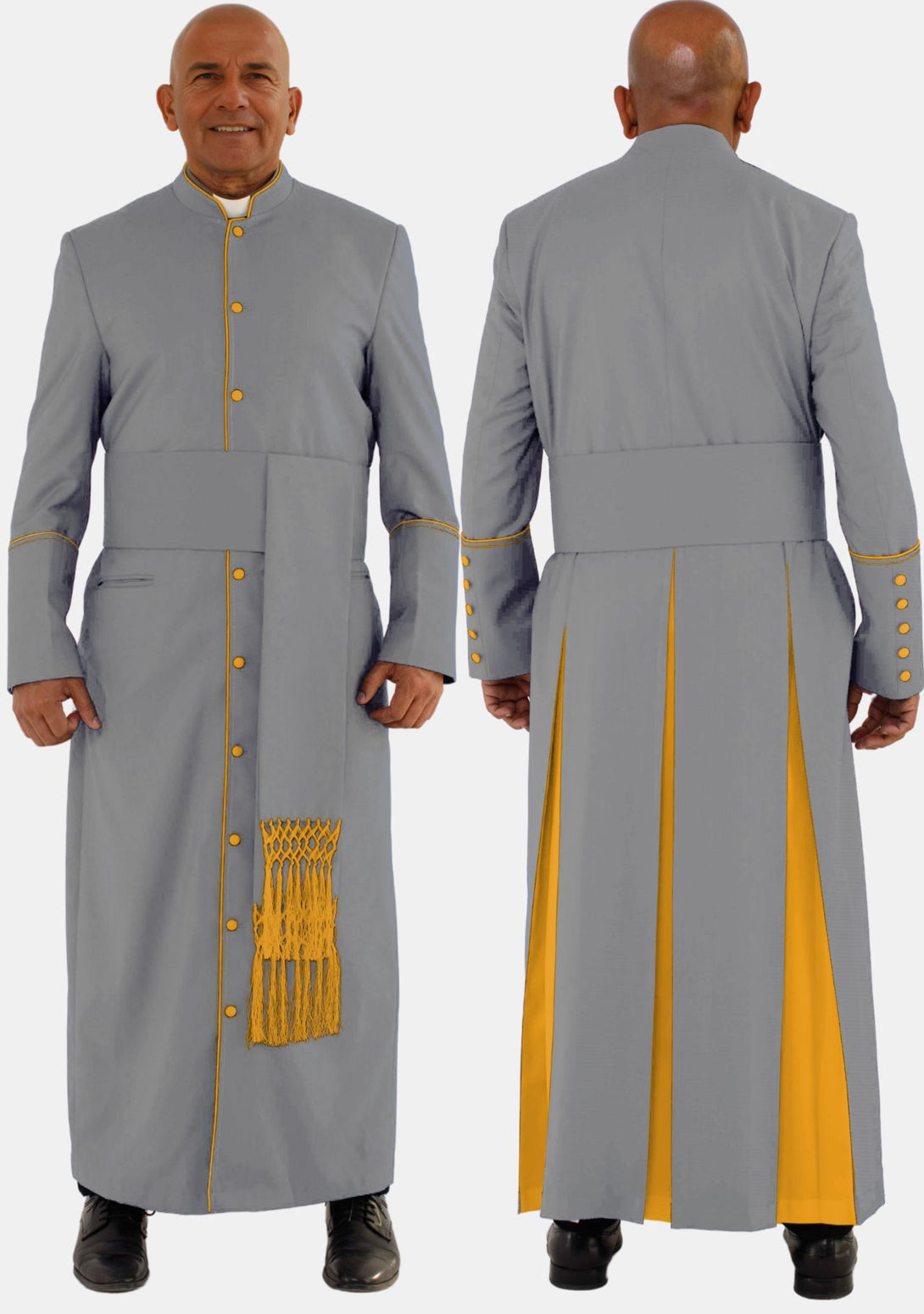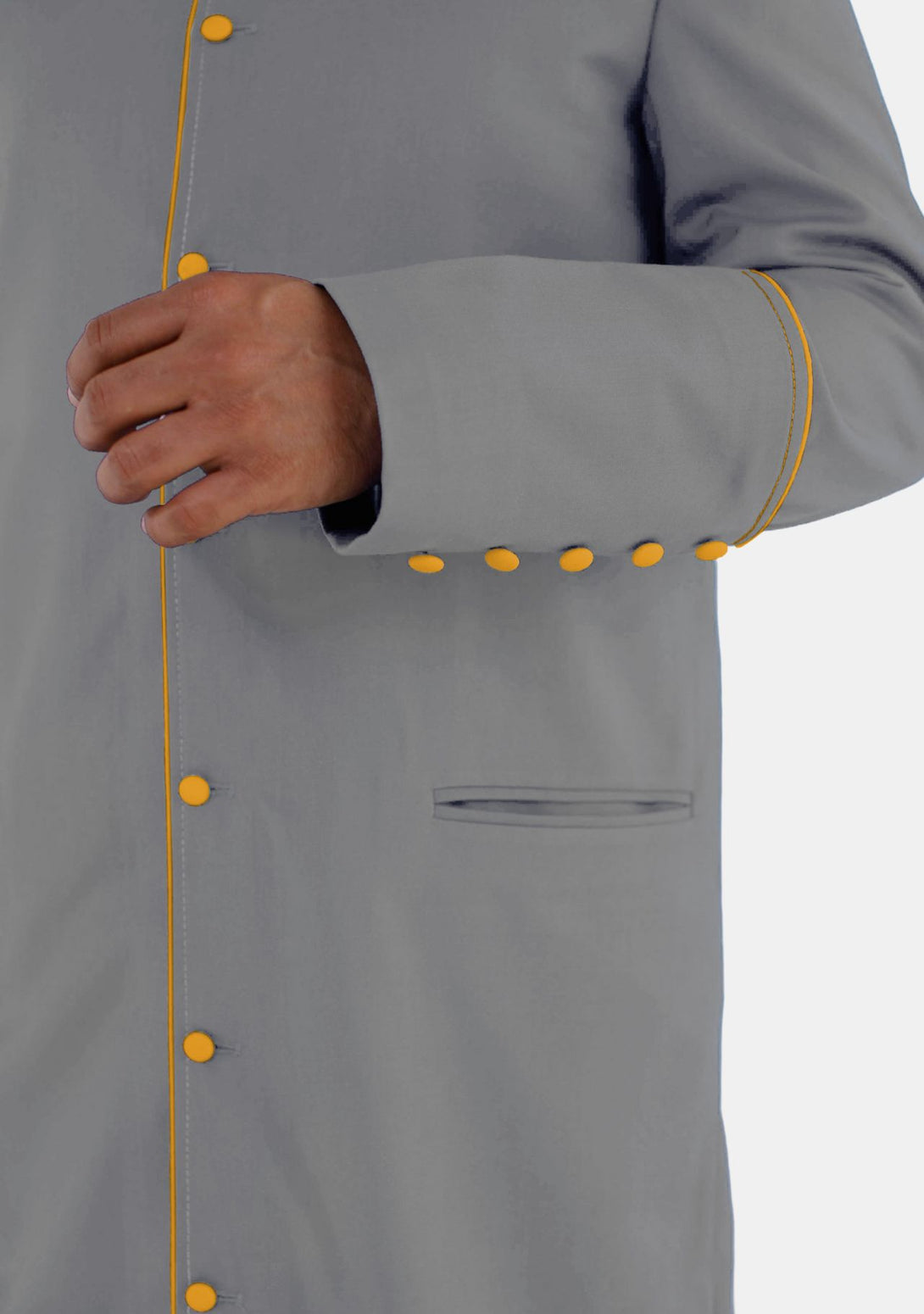 Overall, the Jesse Clergy Robe in Gray with Gold is an excellent choice if you're looking for a comfortable, stylish, and timeless robe for formal occasions. Its simple yet elegant design makes it suitable for any setting where dignity and grace are essential.