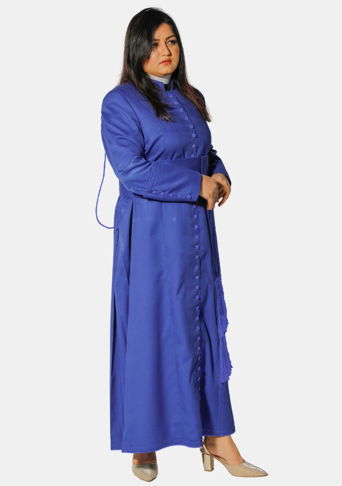 eClergys blue women’s cassock. Elevate your clerical attire with this elegant and sophisticated garment. Crafted with meticulous attention to detail, it offers a timeless and dignified look for women in clergy roles. Perfectly tailored and designed for comfort, this cassock is a symbol of grace and professionalism. Embrace a sense of reverence and poise with this exquisite piece.
