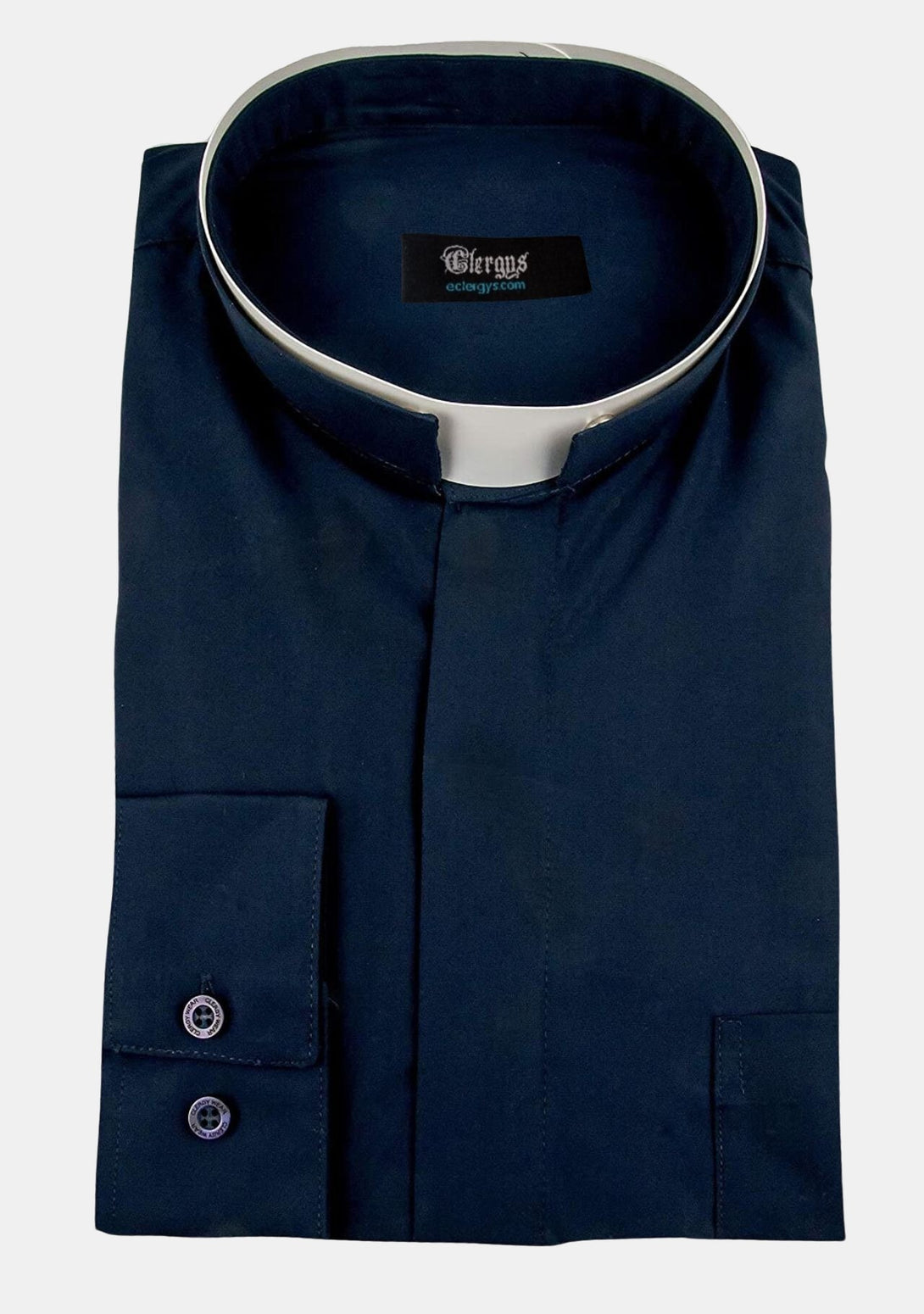 Navy Blue Clergy Shirt with Roman Collar - Perfect for Every Occasion - Shop Now!