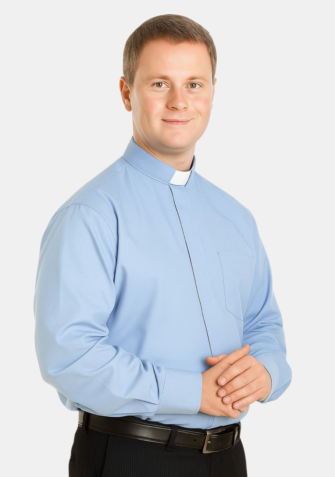 Wear Your Faith Proudly – Purchase the Sky Blue Clerical Shirt Now!