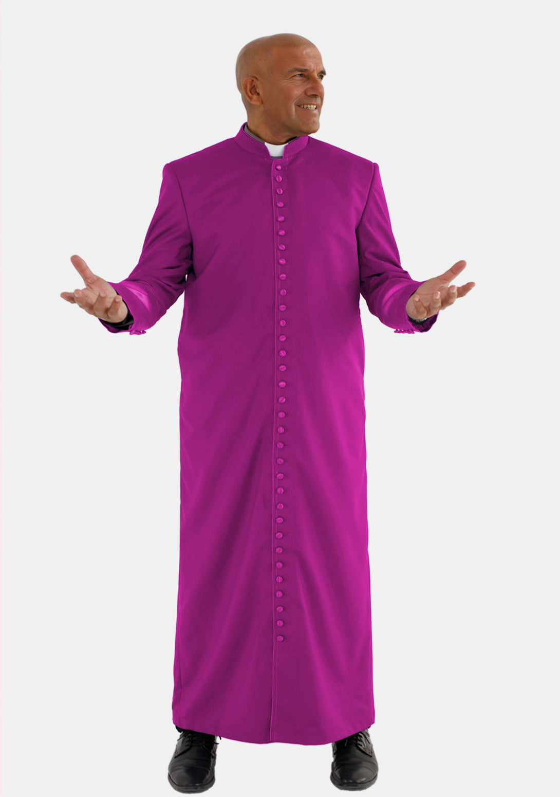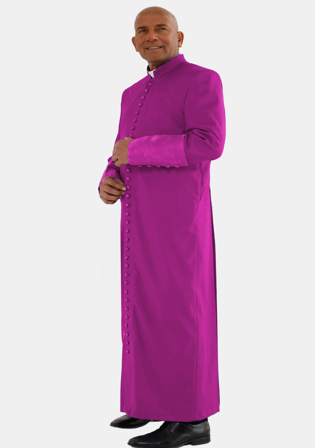 The Emmanuel Men's Roman Cassock Red Purple is designed for distinction. With satin cuffs and a stylish, long cut, it's the perfect choice for formal and ceremonial wear. The long, flowing design of the cassock reaches down to the ankles, providing a graceful and dignified appearance that enhances the wearer’s presence.