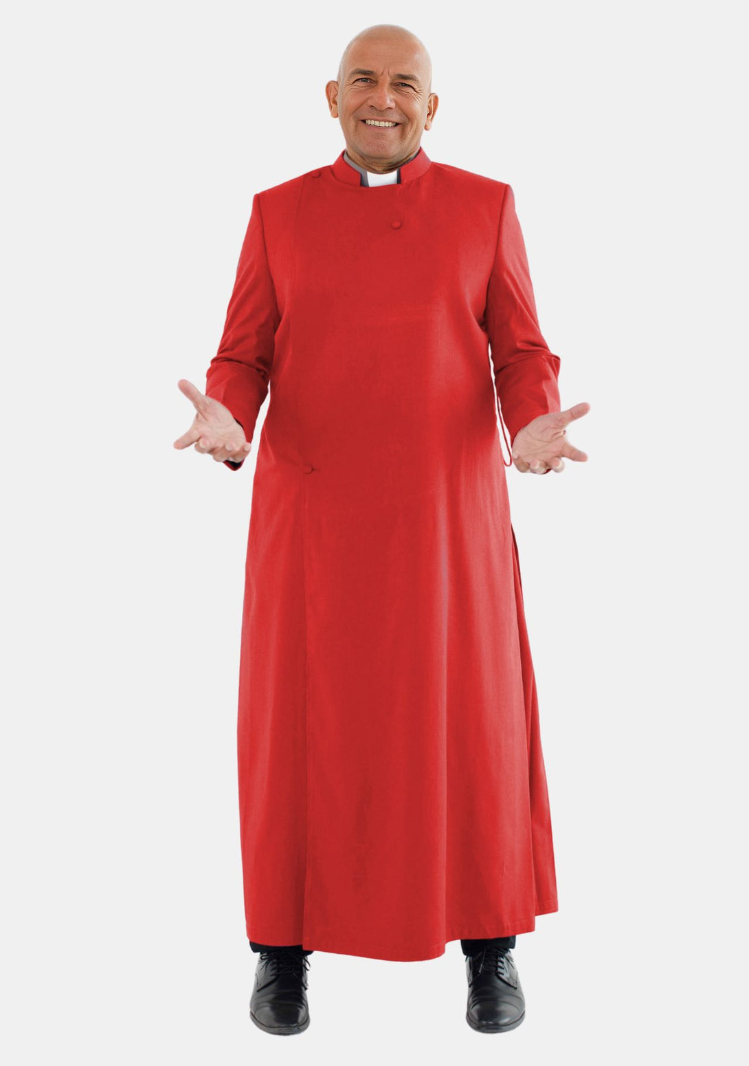 Join the ranks of distinguished clergy – Purchase the Haziel Anglican Double Breasted Cassock in Red!