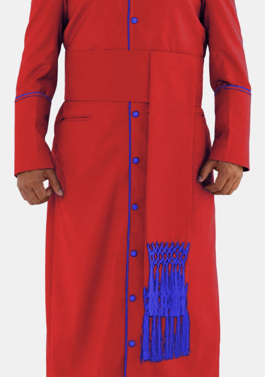 eClergys Red Cincture Belt with Hand-Knotted Royal Blue Fringes for Style
