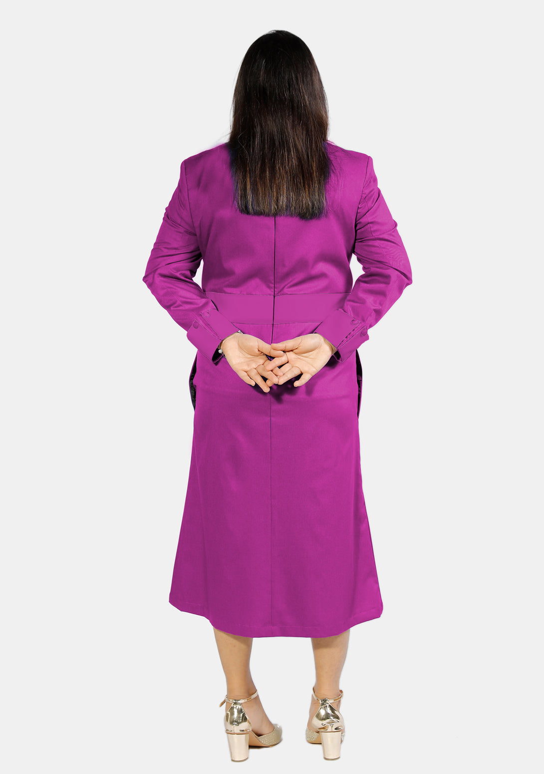 The Womens Clergy Dress Red Purple with Designer Buttons is made for women who serve with heart and courage in the church. It’s great for those who preach, pray, teach, or support others. This dress helps you feel strong, kind, and ready to lead. The red-purple color is bold and powerful. It shows love, faith, and wisdom. This color is also used during special church days. When you wear this dress, you not only look good, but you also show that your work in the church matters.