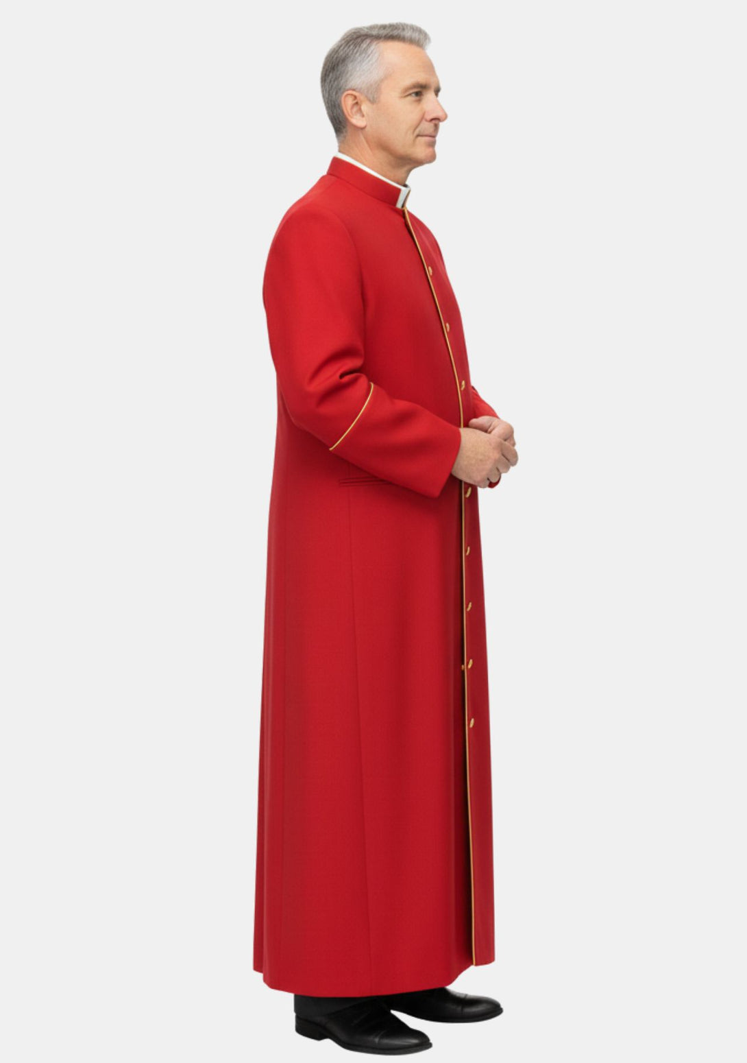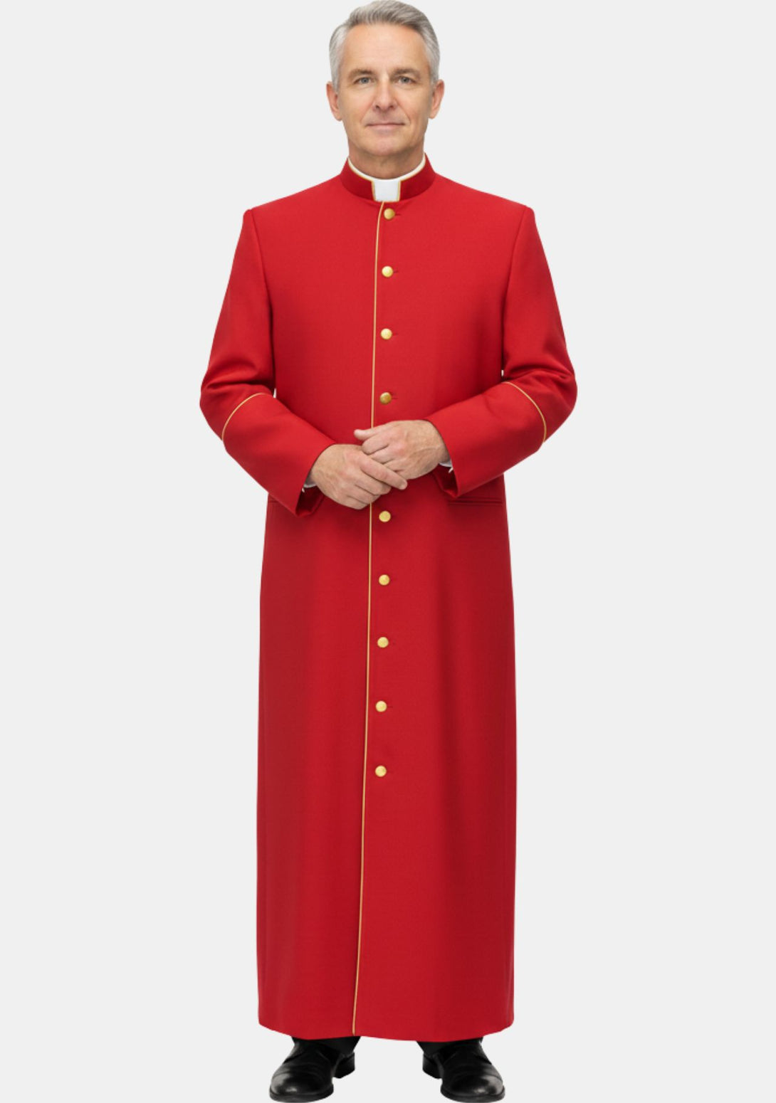 • Red and Gold Design: Red clergy robe accented with rich gold details for a bold, dignified look.