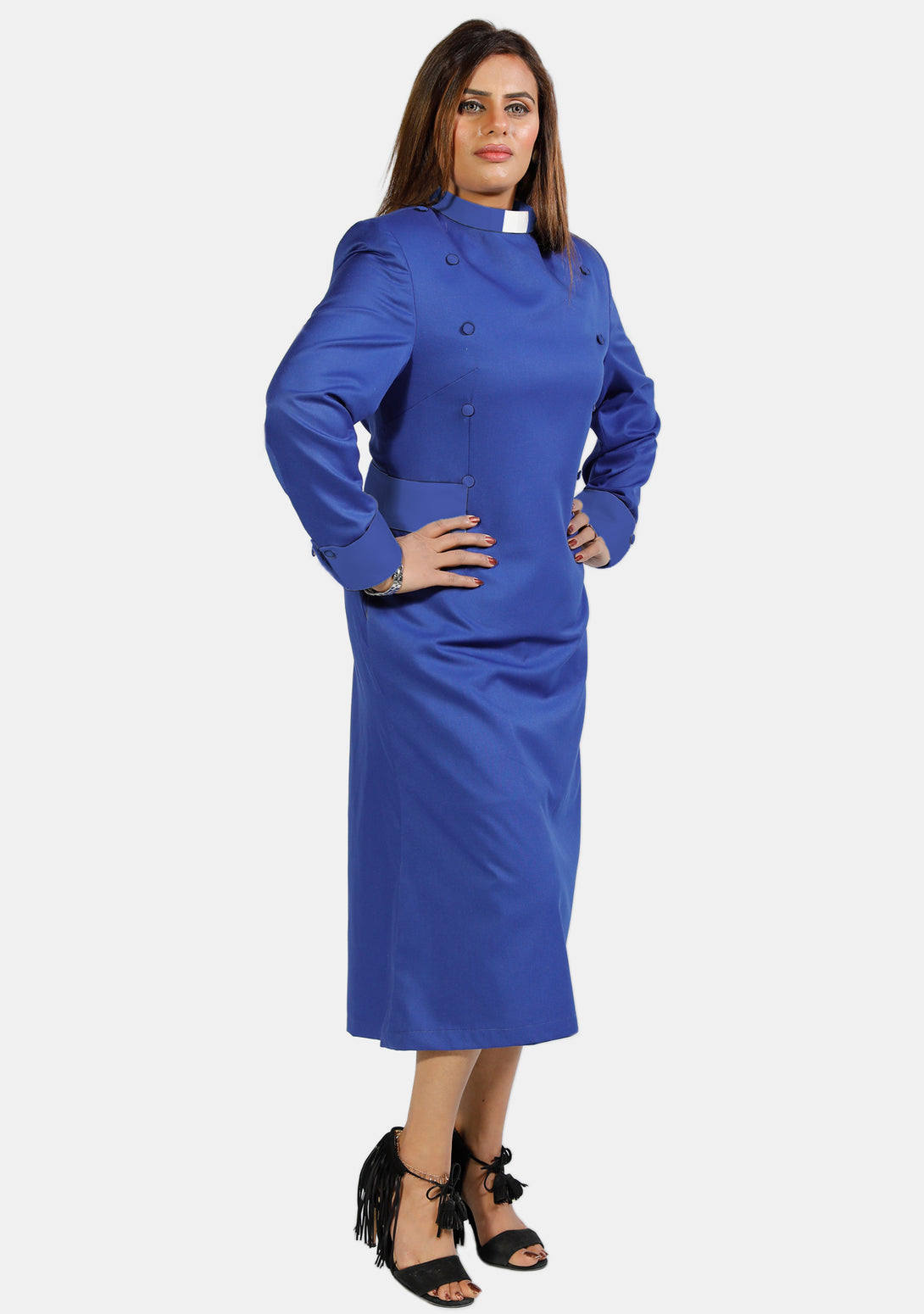Step into Ministry with Womens Clergy Dress Royal Blue with Designer Buttons