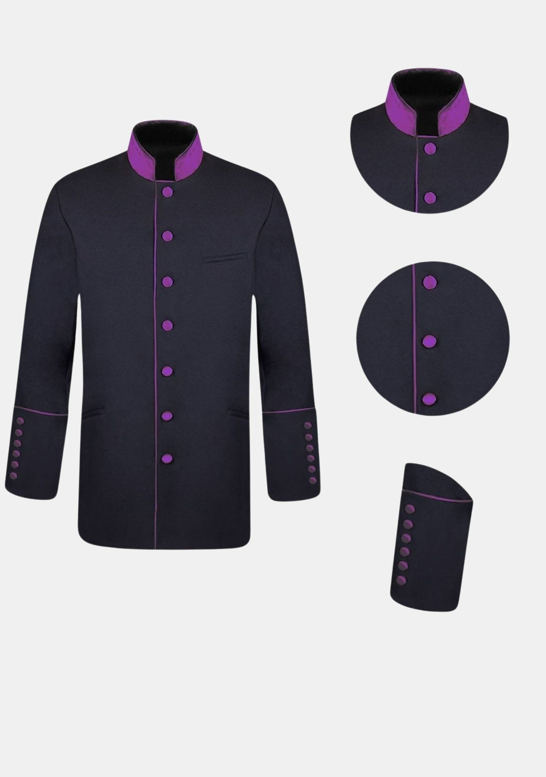 A jacket for priests is a symbol of tradition and modesty, commonly worn during religious ceremonies. It is available in the classic Black Purple combination. We offer not only a formal and modest design to reflect personal taste and religious traditions.