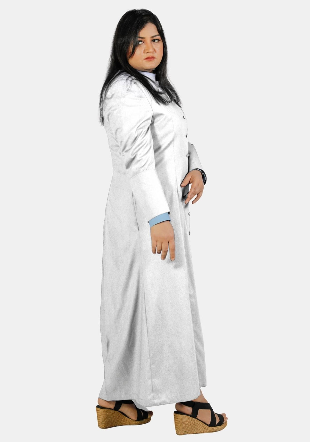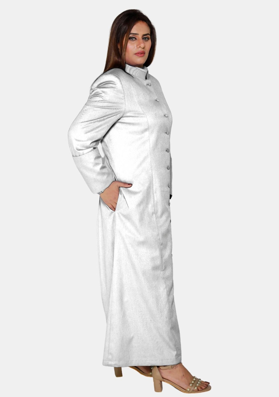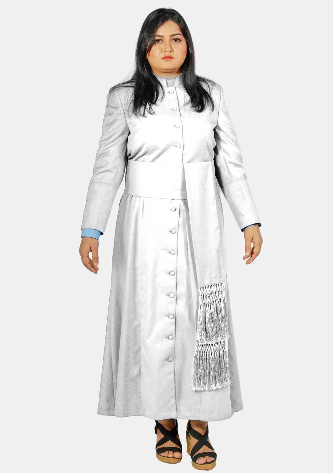 - Premium Material: Crafted from super fine tropical fabric, this White Female Clergy Robe exudes quality and comfort, ensuring an elegant and distinguished appearance.