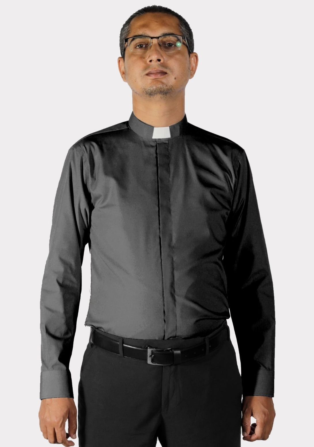 Features of the Tab Collar Black Long Sleeve Clergy Shirt.