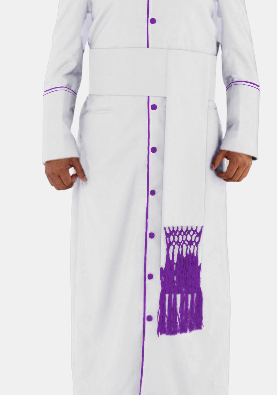 Wearing a white cincture is a reminder of faith, purity, and devotion to God's work. It reflects the commitment to serve with humility and grace, while the Roman purple fringes signify the wisdom and responsibility of leadership.