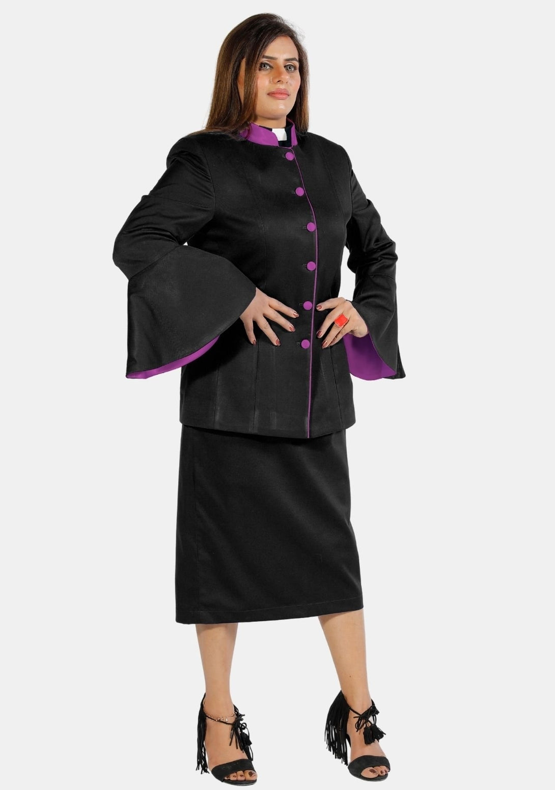 Womens Clergy Suit Flared Sleeve – Black/Purple