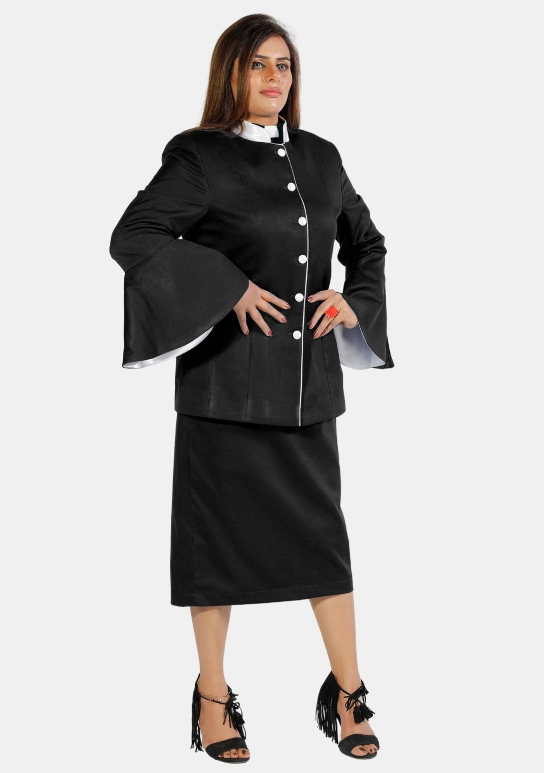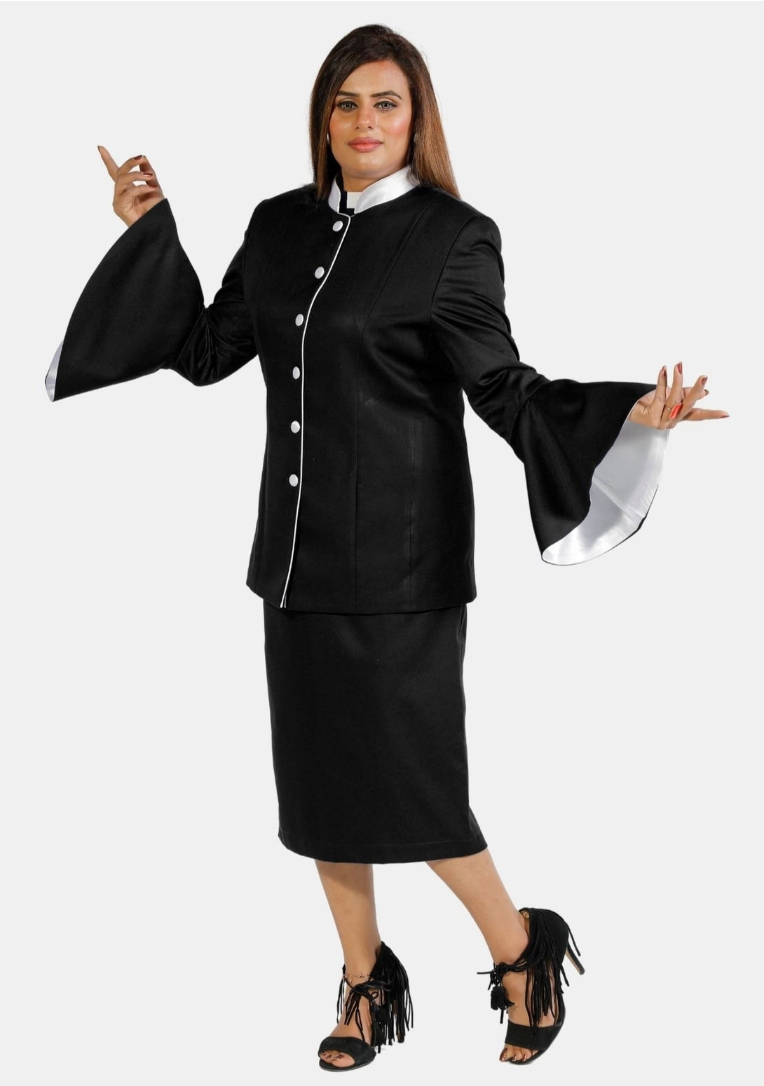 Grace in Leadership: Women’s Clergy Suit Flared Sleeve – Black/White