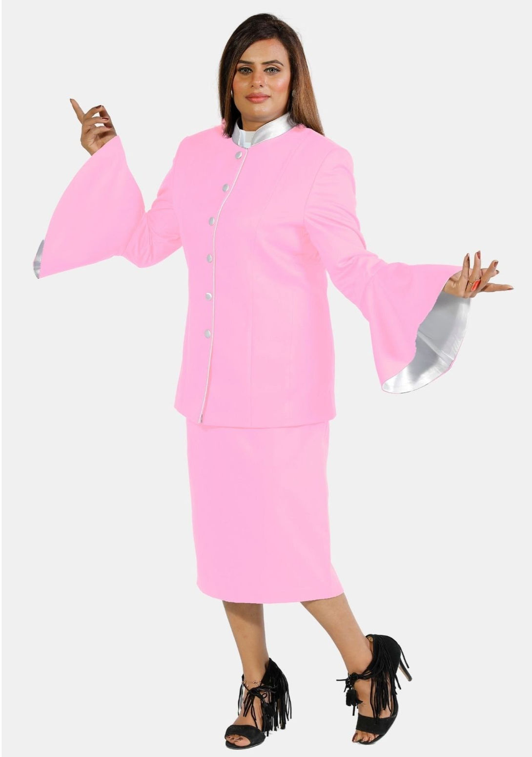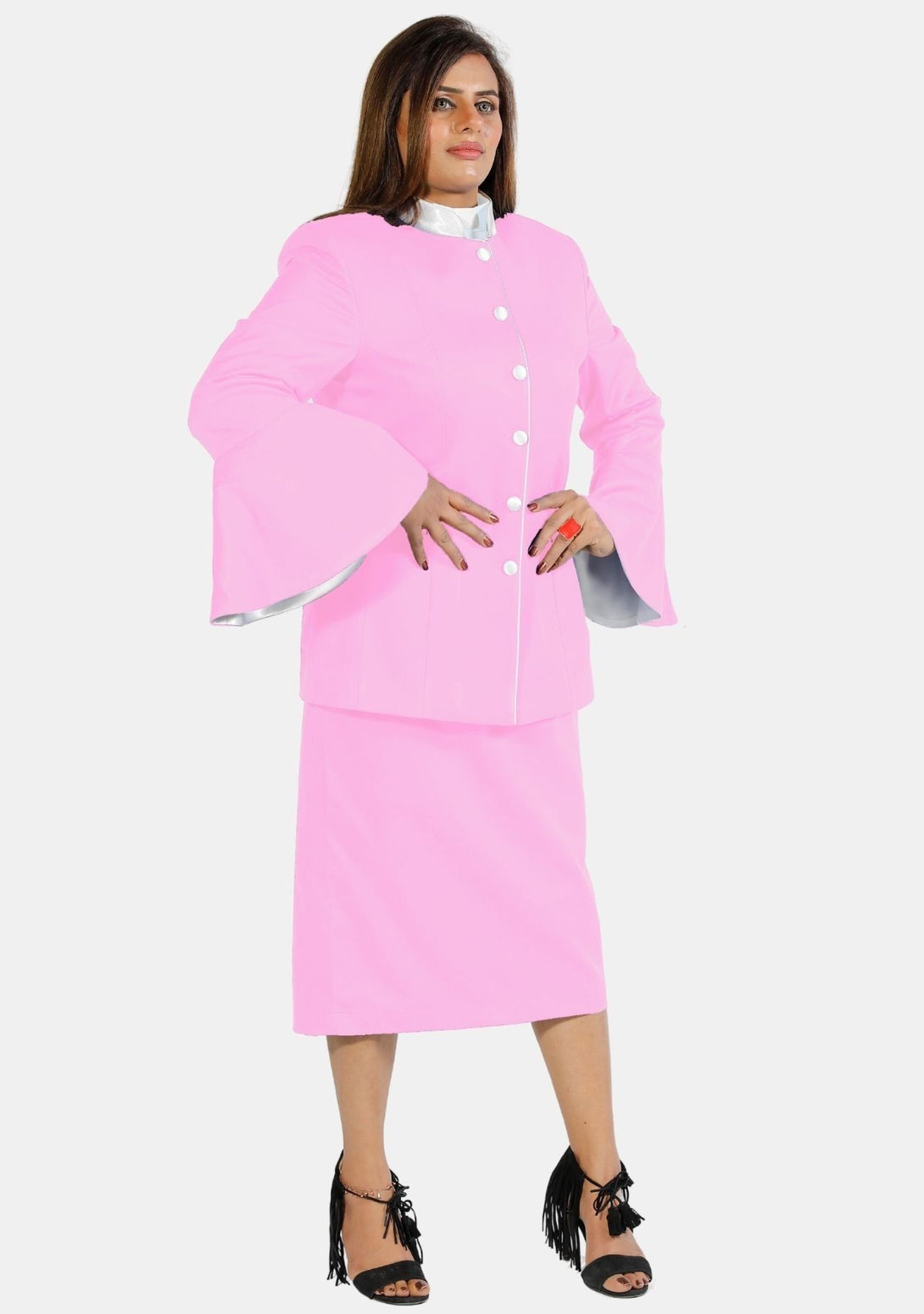 Upgrade your Preaching Attire with Womens Clergy Suit Flared Sleeve – Pink/White! Shp Today.