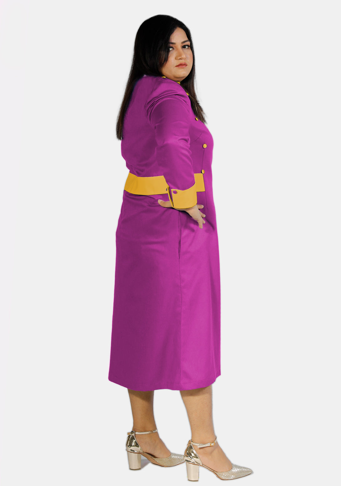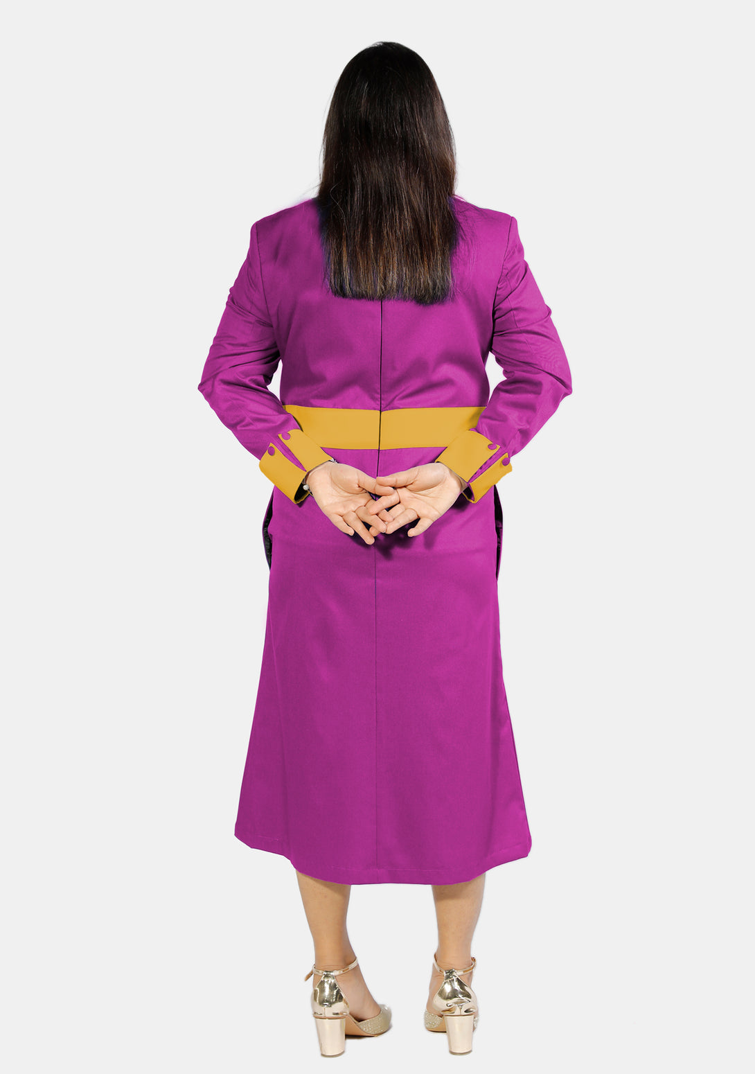 This special Womens Clergy Dress Red Purple with Gold Designer Buttons shows how you can be both confident and friendly. It’s not just for wearing—it’s for living in, helping you connect, inspire, and guide others.